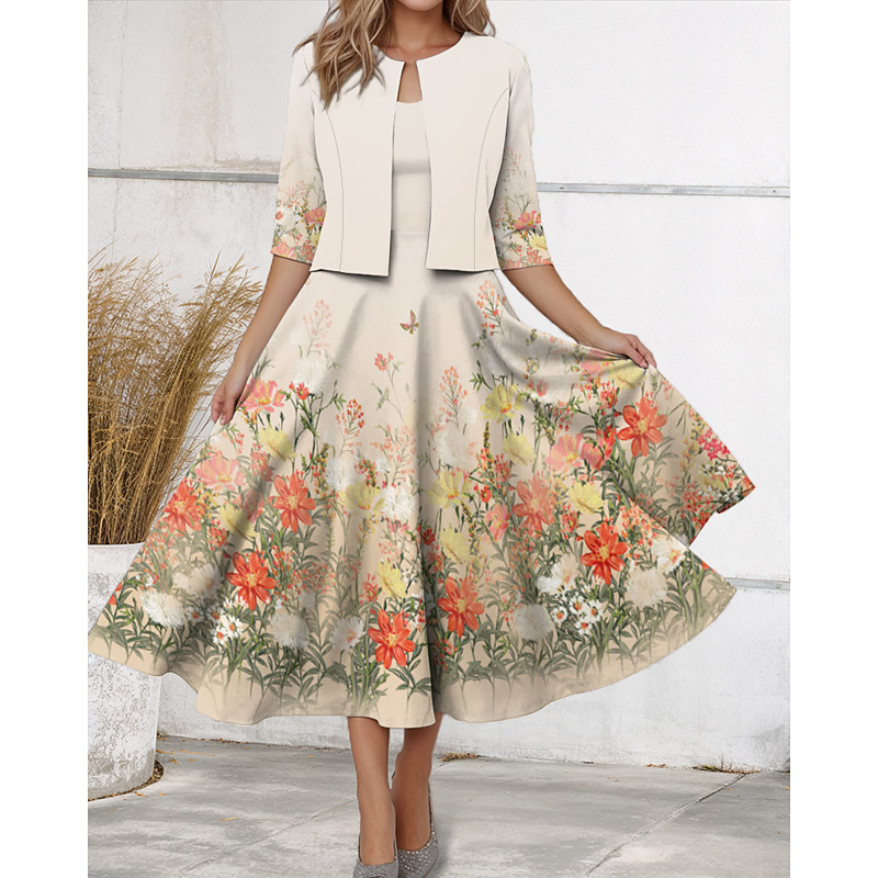Women's Two Piece Dress Sets Midi Dress with Jacket Elegant A Line ...