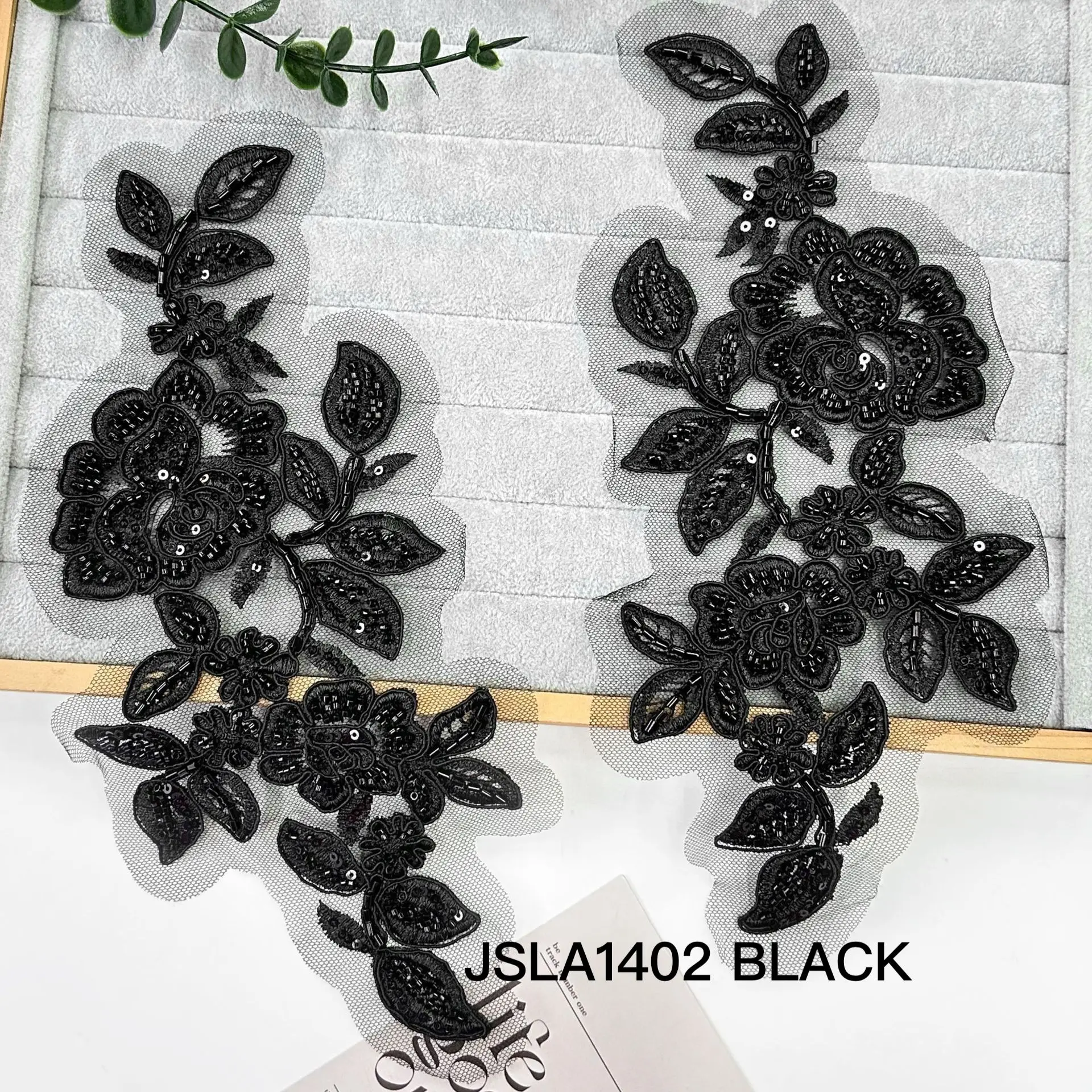 Handmade Black 3D Floral Lace Applique Sequin Beaded Embroidery Pat...