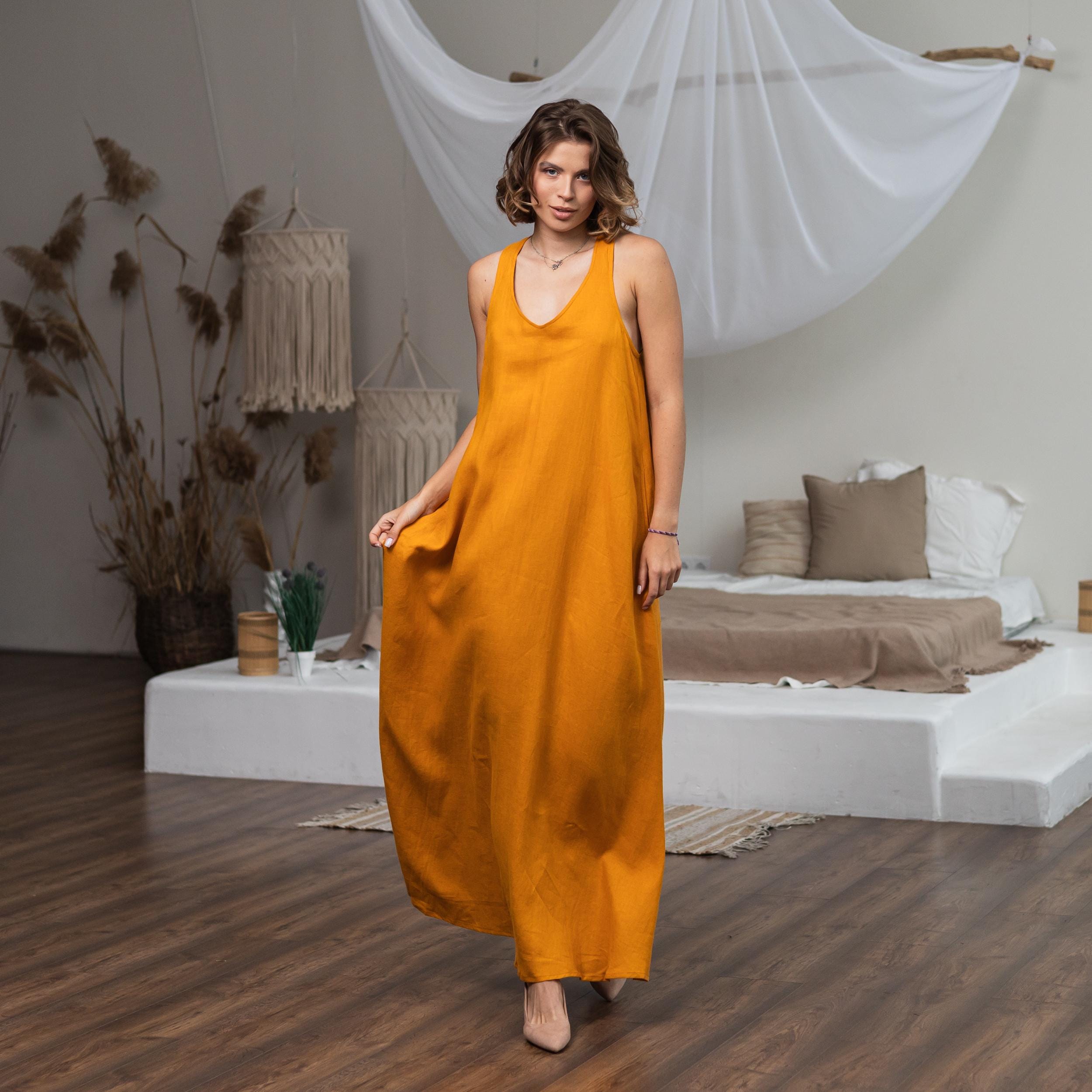 Sleeveless linen dress, Yellow linen dress, Linen maxi dress, Linen...
