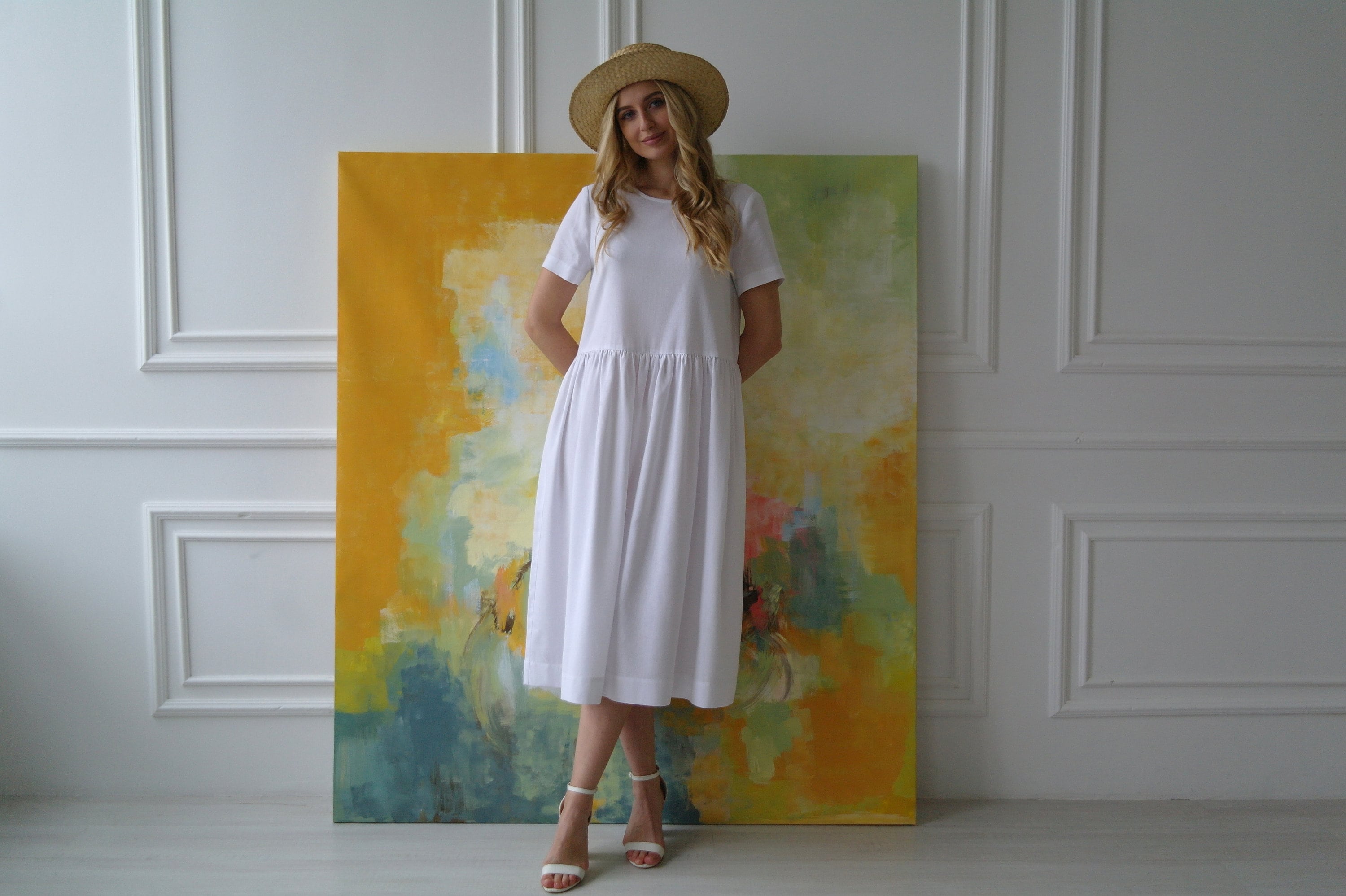 "White linen dress/ Oversized linen dress/ Smock linen dress/ Loose linen dress/ Long linen dre...