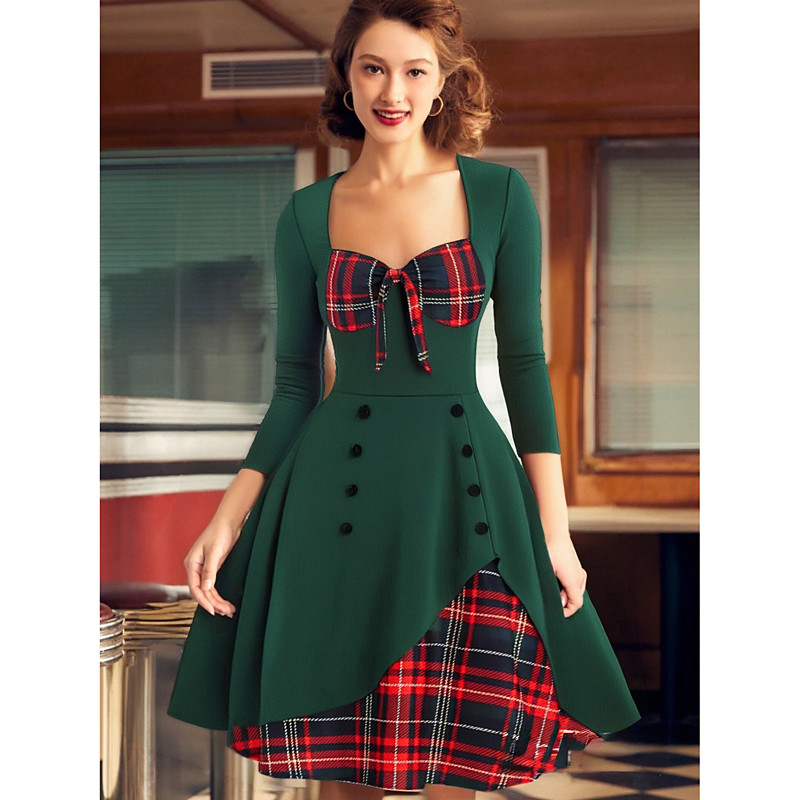 Retro Vintage 1950s Cocktail Dress Midi Swing Dress Flare Dress Chr...