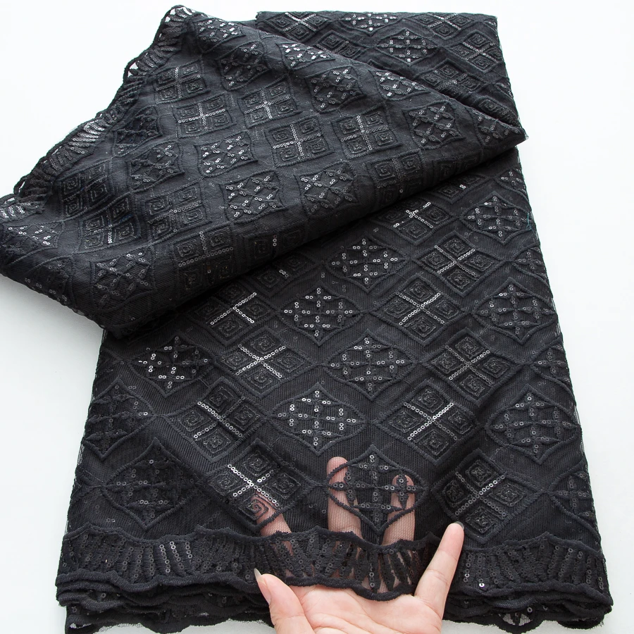 Balck French Mesh Lace Fabric Sequins High Quality Nigerian French ...