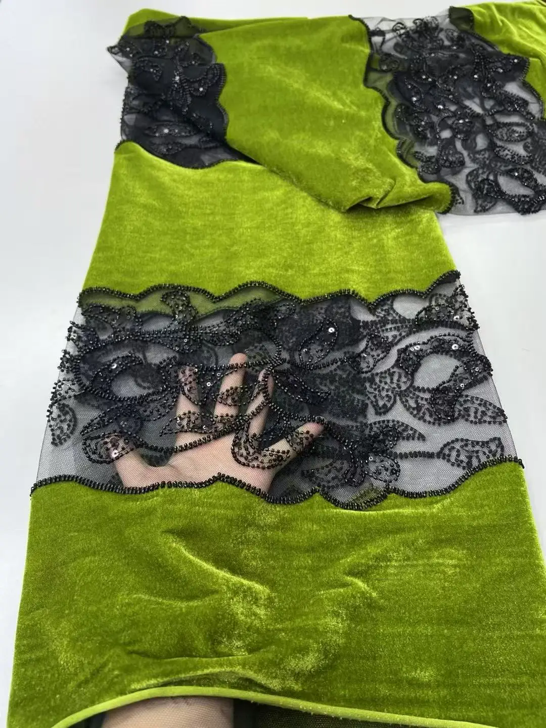 2025 New Design Luxury French African Velvet Tulle Beaded lace Sequ...