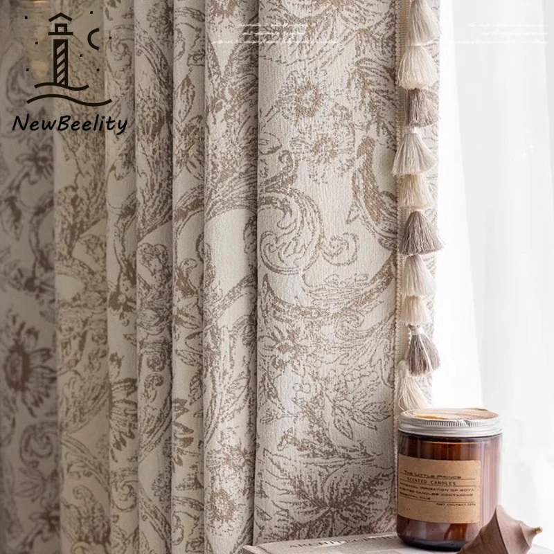 New French Retro Morris Colored Jacquard Chenille with Lace Curtains for Living Room Bedroom Dining ...