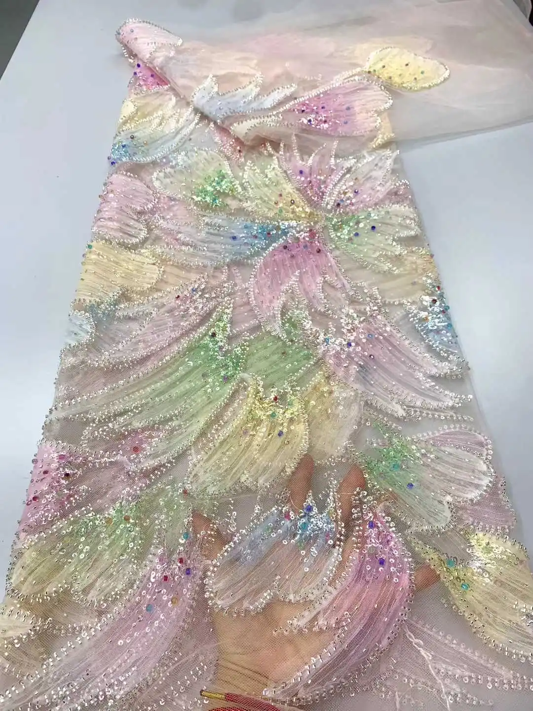 NI AI 2025 African French Tulle Lace Soft French Mesh Net Lace Fabric with Sequins Beads Nigerian Tu...