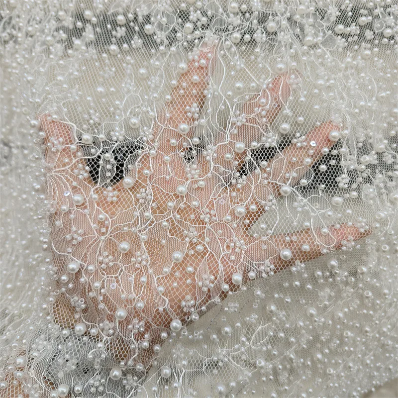 Milk White Pearl French Lace Fabric Wedding Dress, Cheongsam, Curtains, DIY Sewing.RS2506308