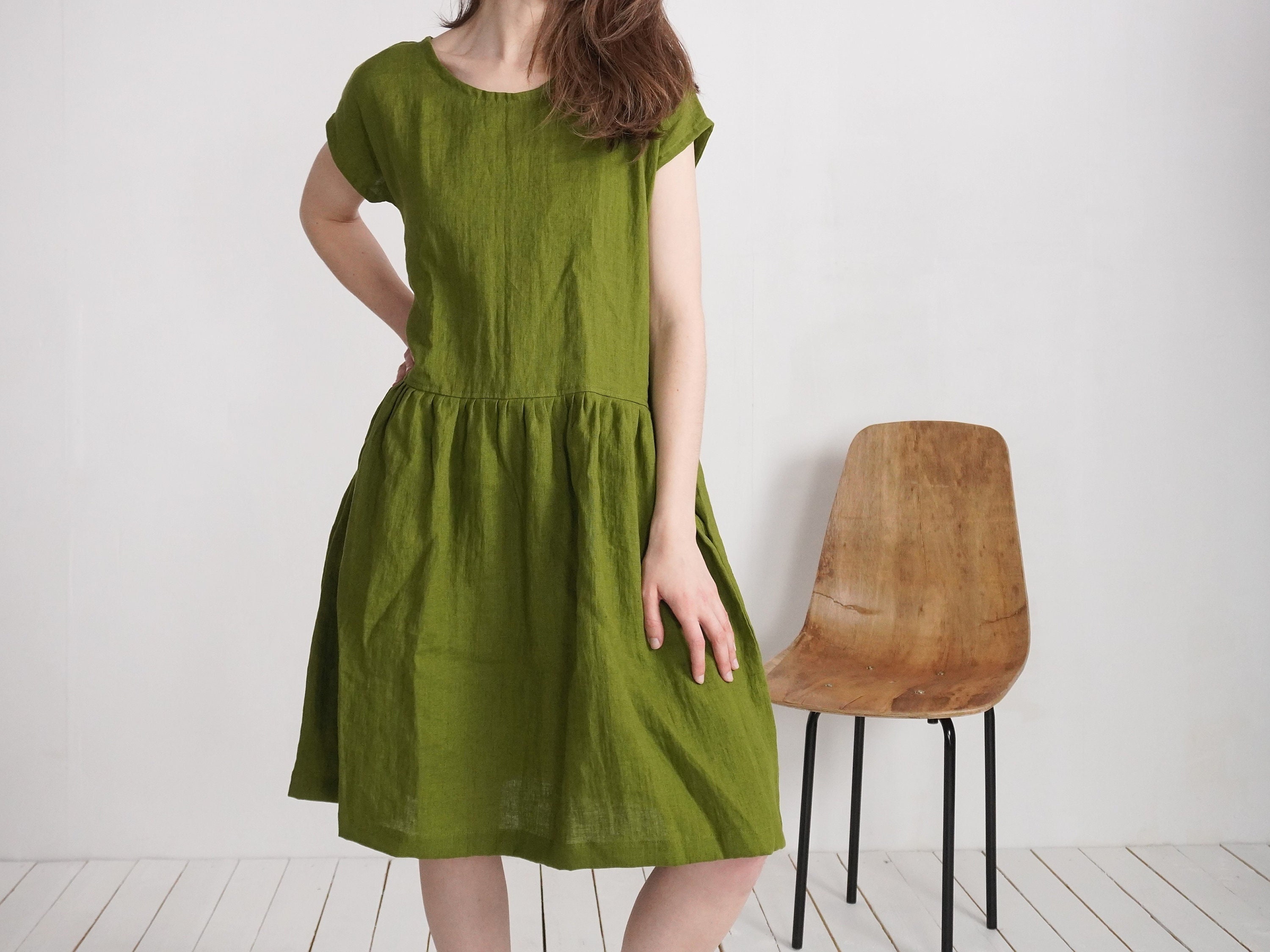 Midi Smock Linen Dress. 100% Linen Dress. Sustainable Linen Summer ...