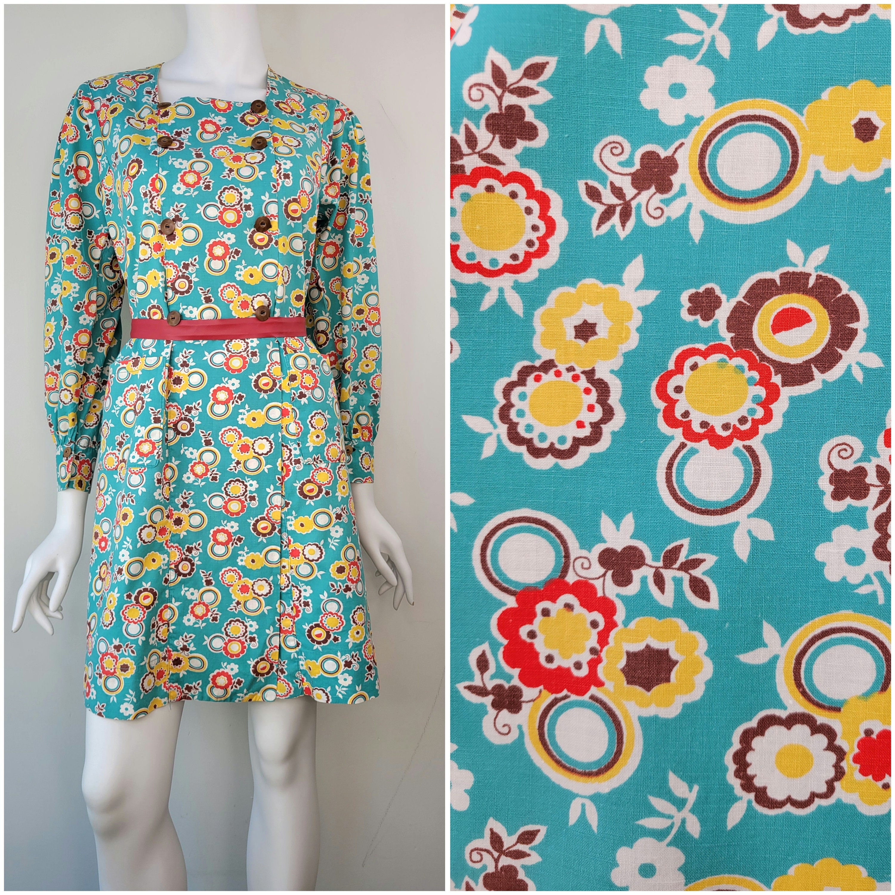 "Original 1930s hand made feedsack smock dress. Such a fun print and the colors are still so br...