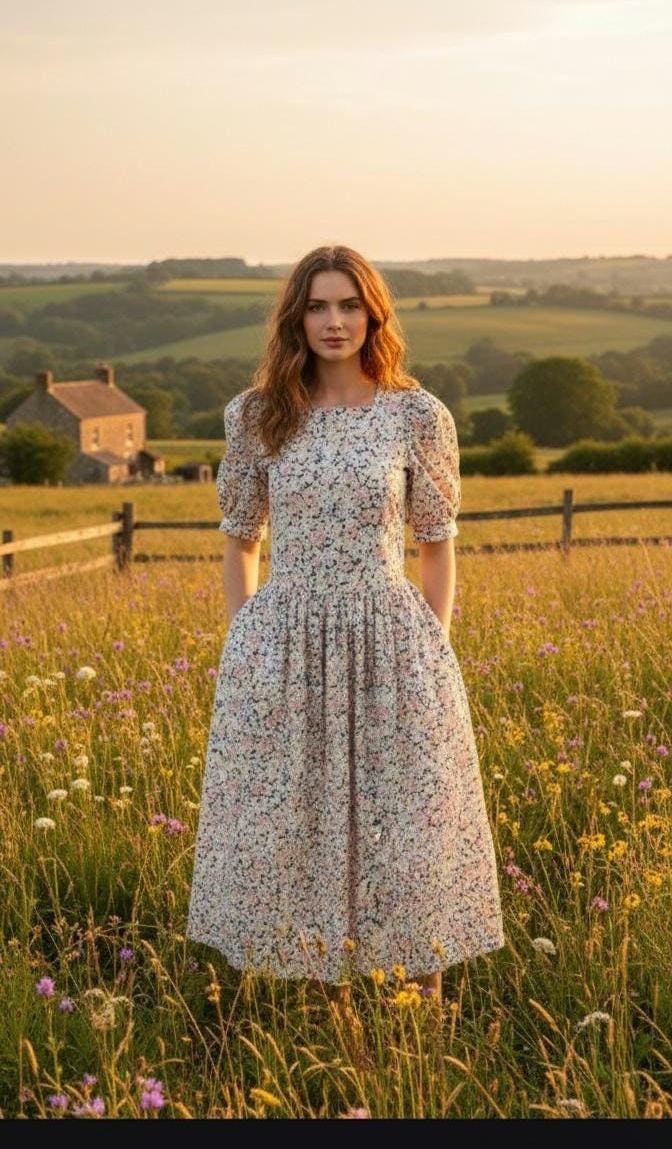 "Vintage Laura Ashley Dress Description: This is a genuine vintage Maxi/Midaxi length dress dat...