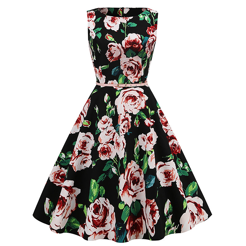 Retro Vintage 1950s Knee Length Swing Dress Flare Dress Sleeveless ...