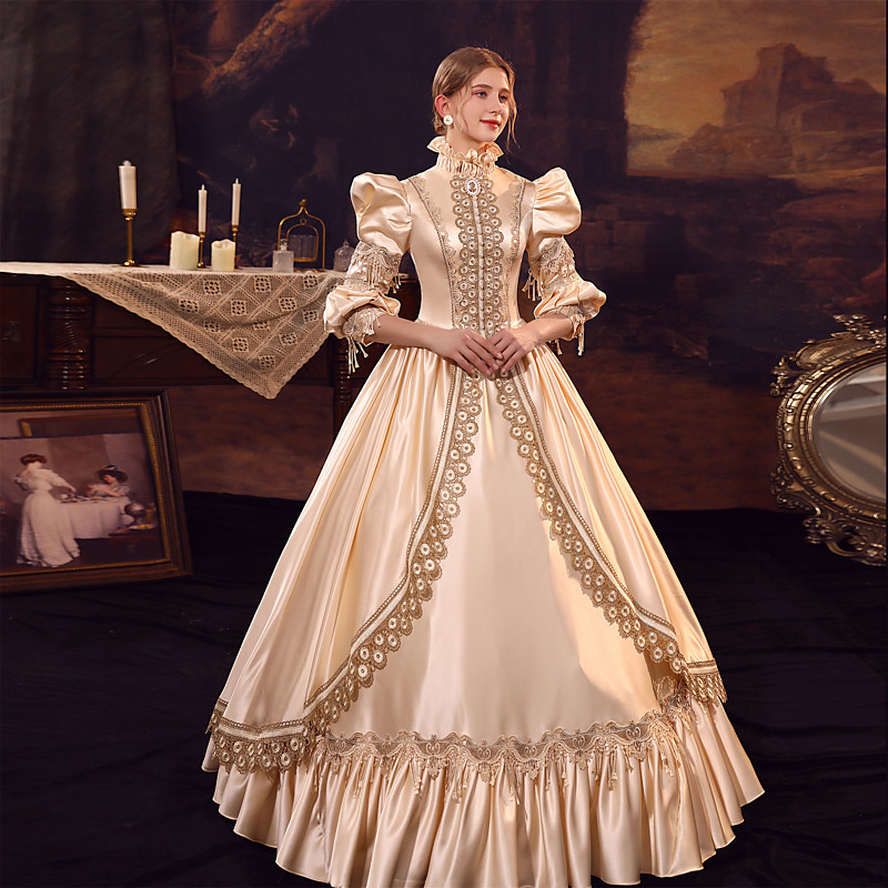 Rococo Baroque Victorian Floor Length Dress Prom Dress Flare Cuff S...