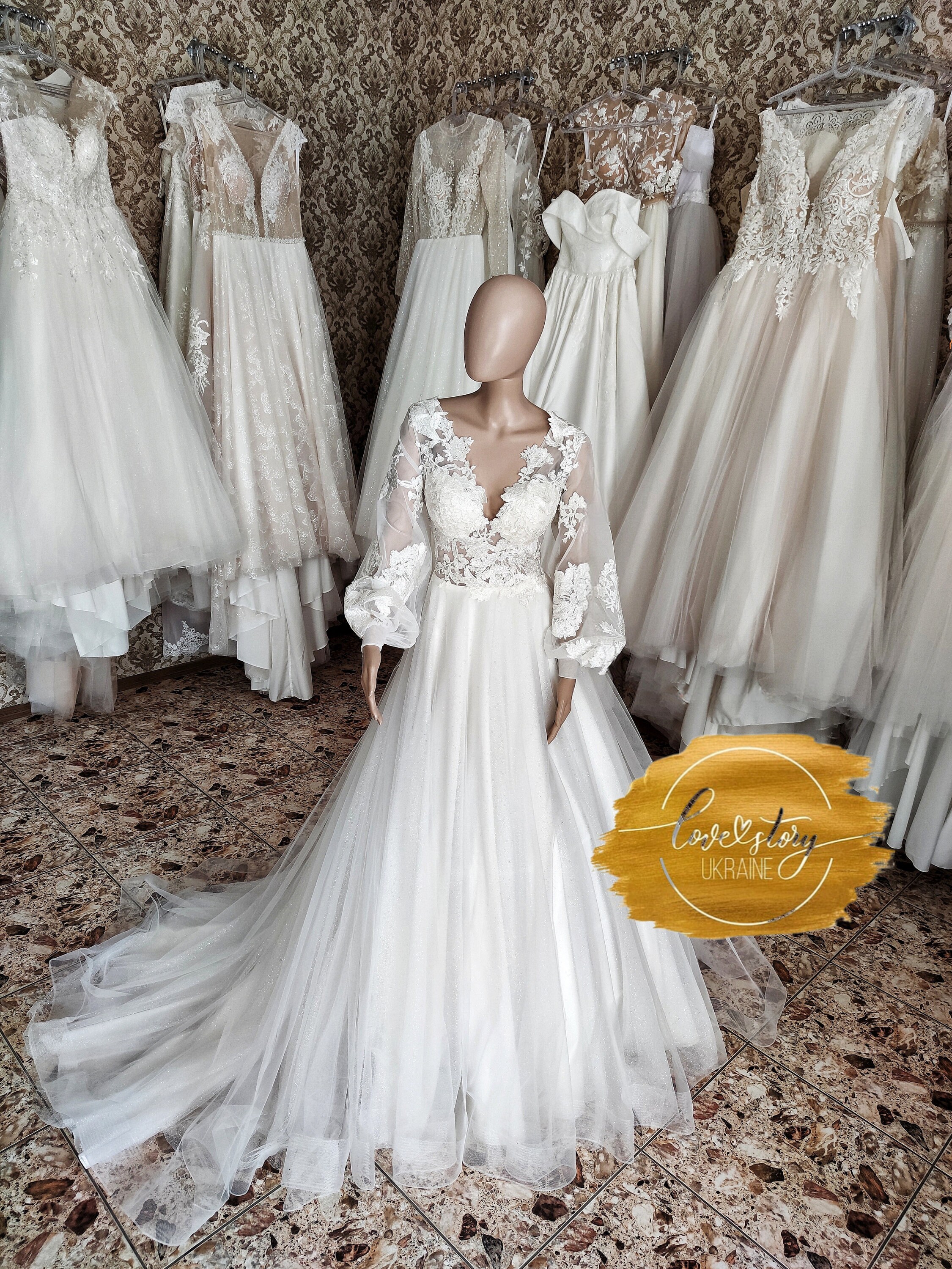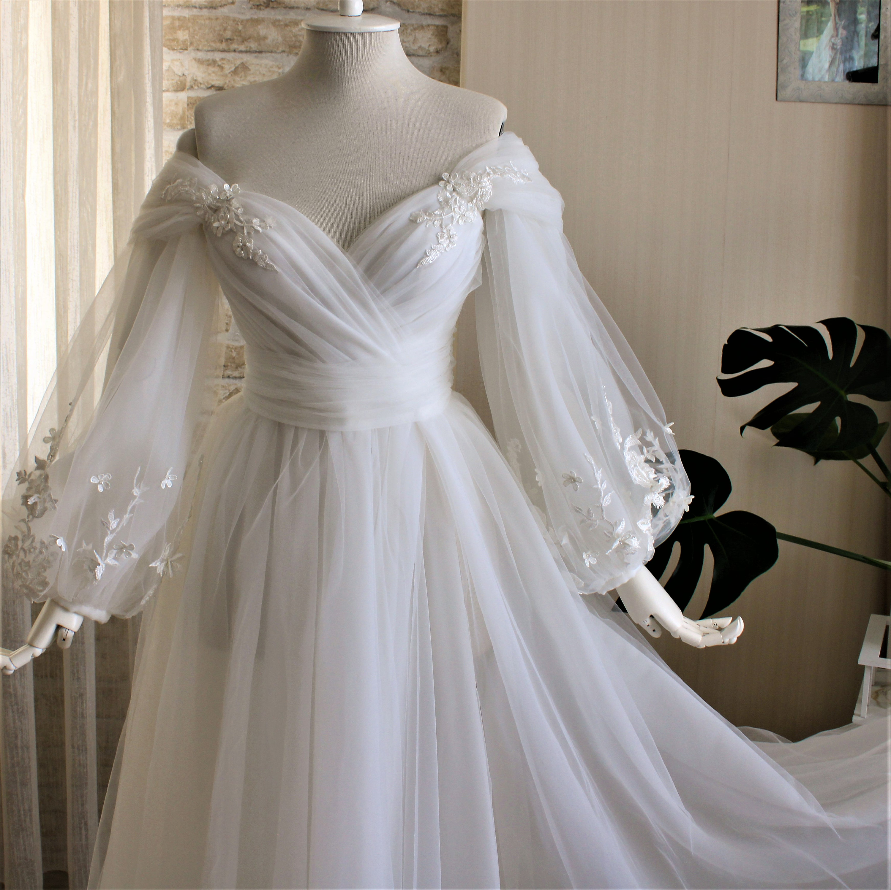 Bishop Sleeve Bridal Dress,ALine Wedding Dress,Long Sleeve Wedding ...