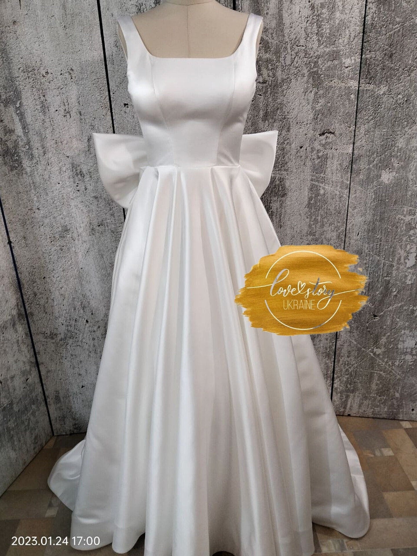 Satin Bridal Dress,ALine Wedding Dress,Long Traine Wedding Dress,Ca...