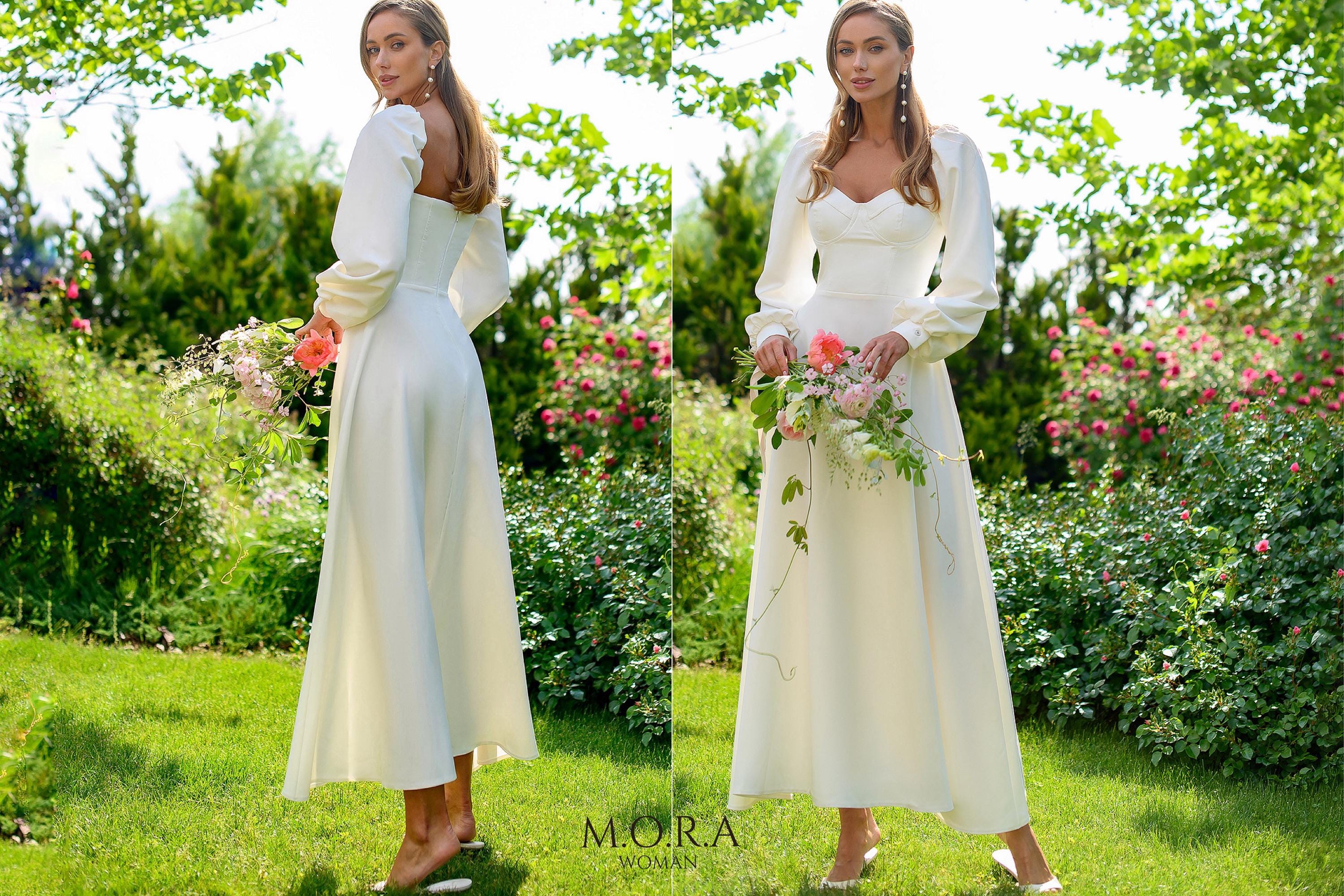 Civil Wedding Dress, Engagement Dress, Wedding Dress, White Dress W...