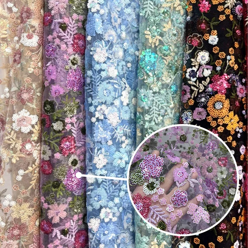 1yard Heavy Embroidery Wedding Dress Fabric Mesh Lace For DIY Sewing Cheongsam Bride Dress Embroider...
