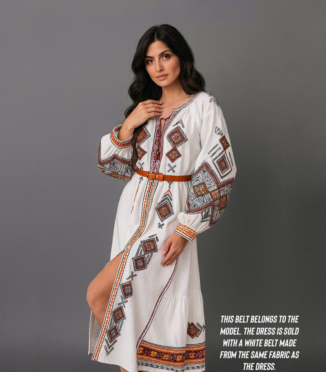 Cross embroidery dress, Midi embroidered dress, white dress, floral...