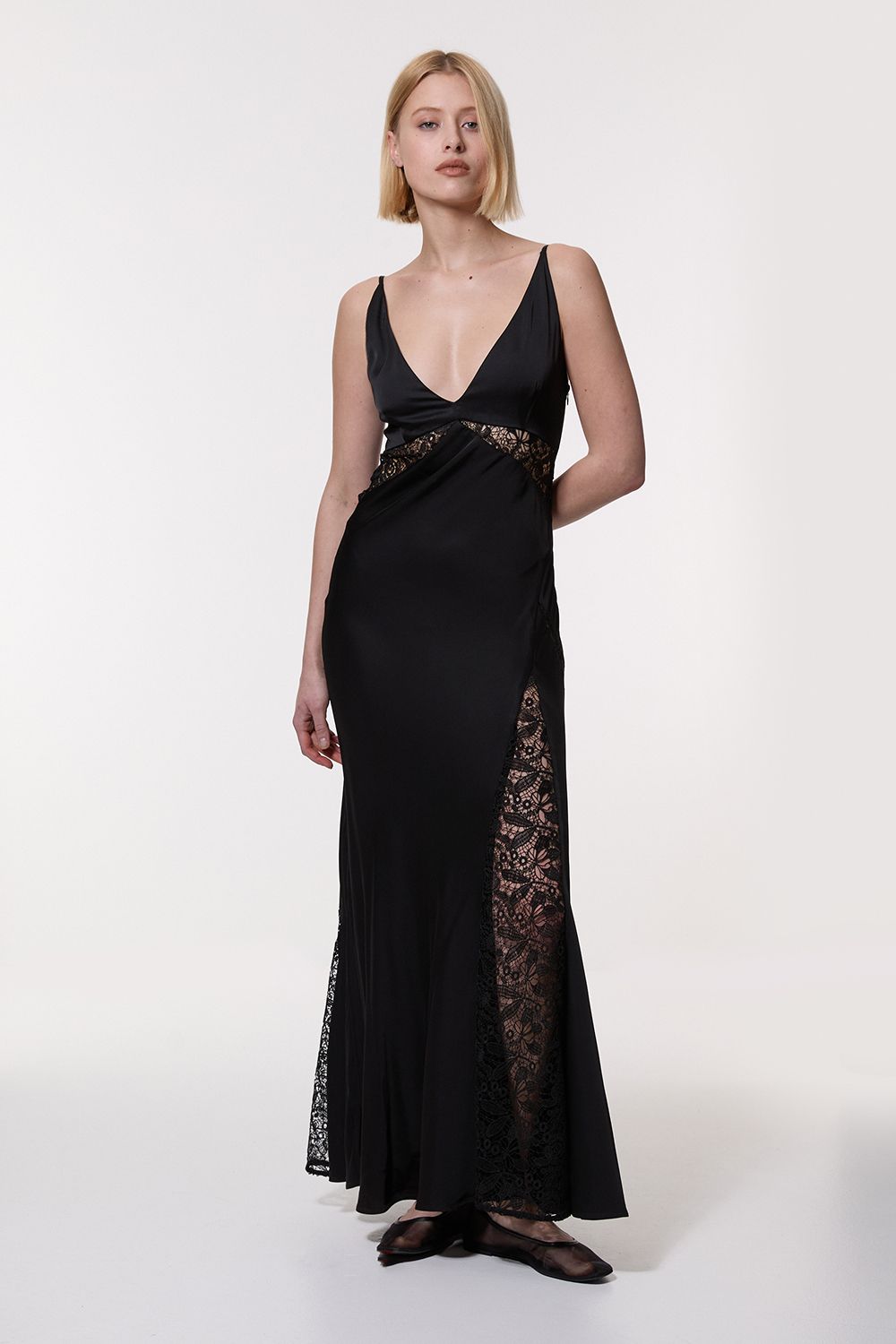 Karen Millen Womens Viscose Satin Woven Maxi Dress With Lace Panell...
