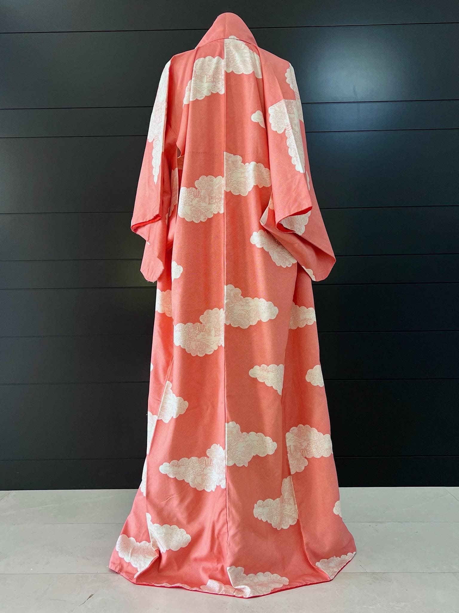 Antique Silk Kimono, Coral Red Silk Kimono, Vintage Silk kimono, Ja...