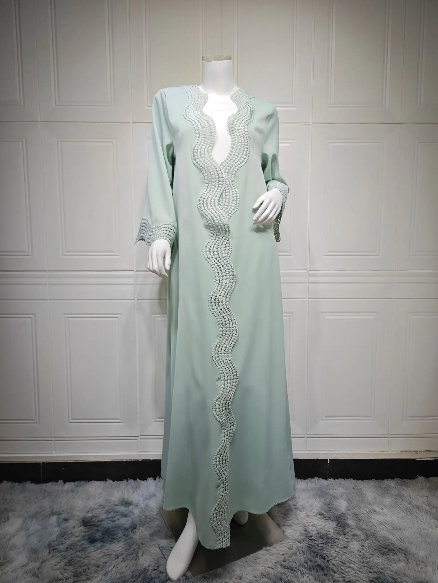 Muslim Women Maxi Dress Dubai Open Abaya Turkey Kaftan Eid Kimono C...