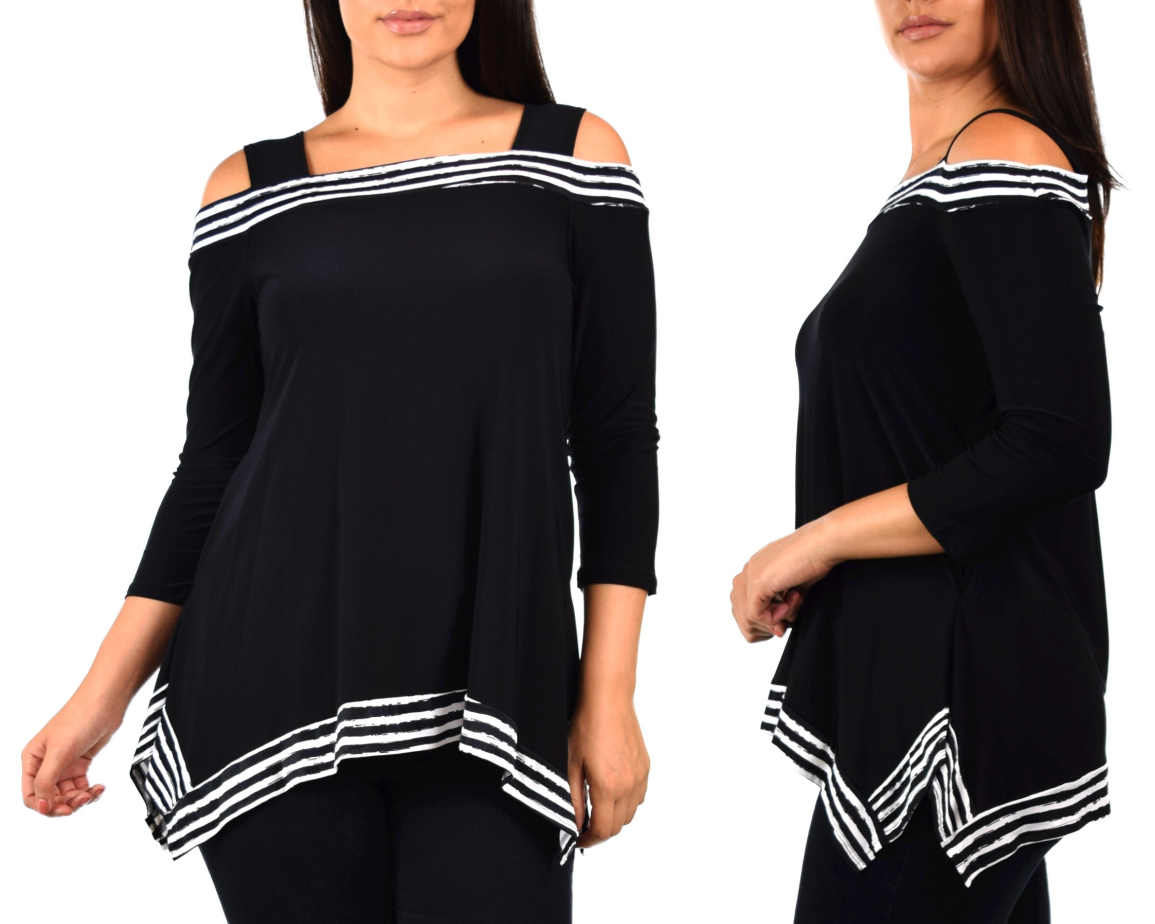 Womens 2 Tone Cold Shoulder 3/4 Sleeve Tunic top with Shoulder Cut ...
