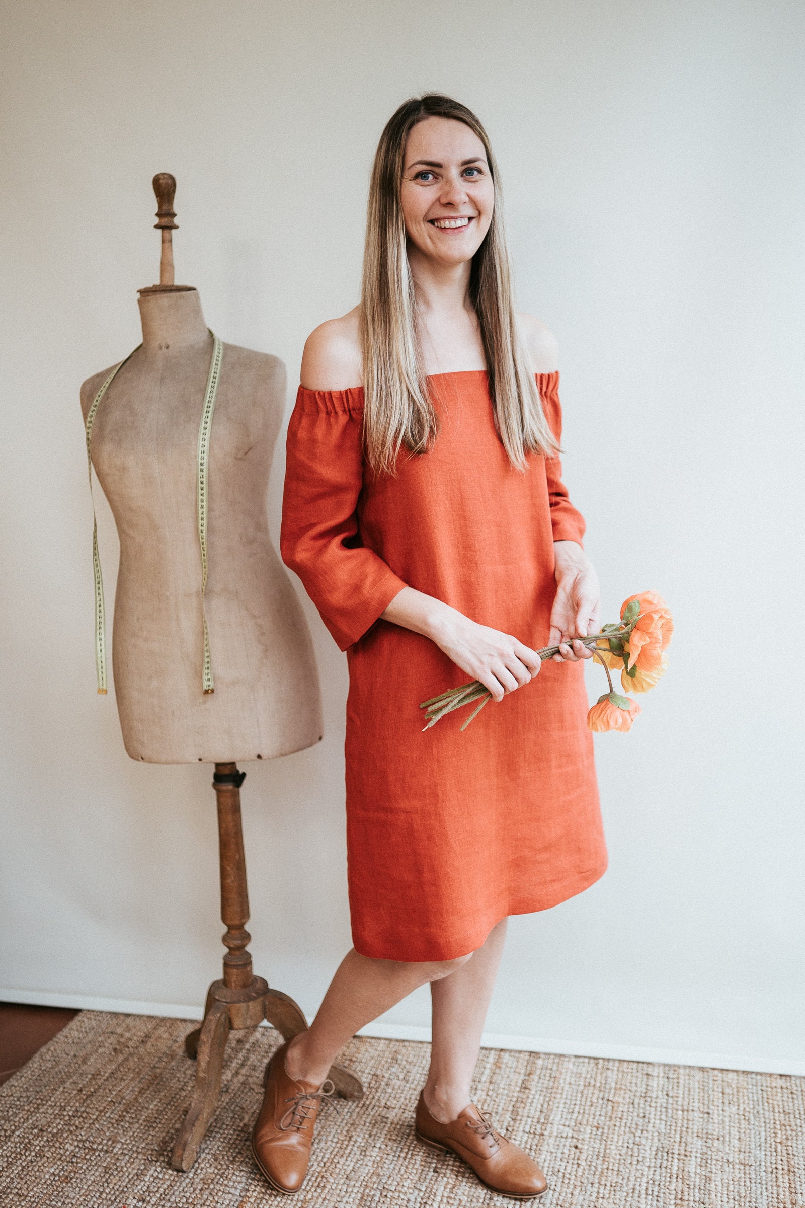 Off Shoulder Linen Dress 'Brigitte', Linen Off the shoulder dress, ...