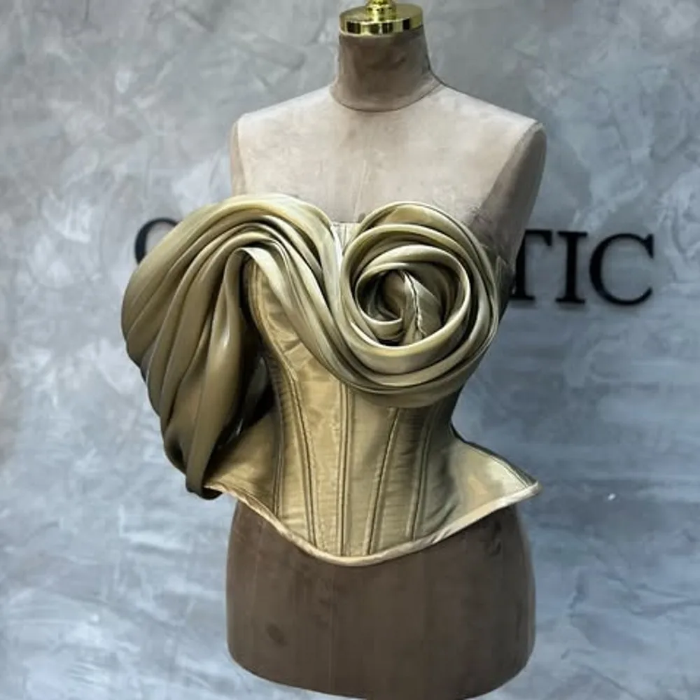 One Shoulder Women Tops Custom Made Handmade Flowers Exposed Boning Birthday Party Top Normal Length...
