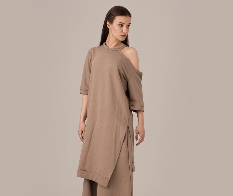 Cold Shoulder Top, Slits Cotton Tunic, Asymmetric Long Tunic, Avant...