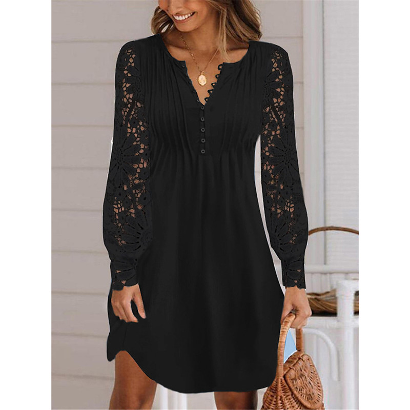 Women's Mini Dress Lace Dress Casual Dress White Lace Dress with Sl...