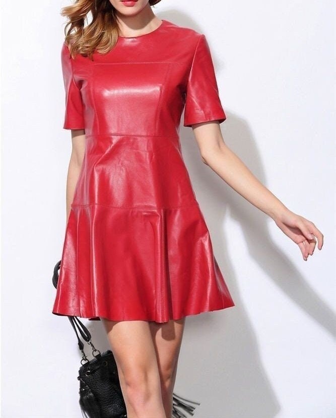Handmade leather dress, women's leather dress, red leather dress, l...