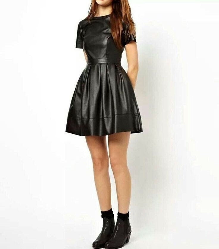 HOT! Womens leather dress, mini flare leather dress, leather mini d...