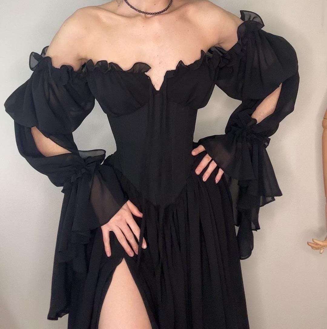 Chiffon dress, corset dress, chiffon corset dress, black dress, nig...