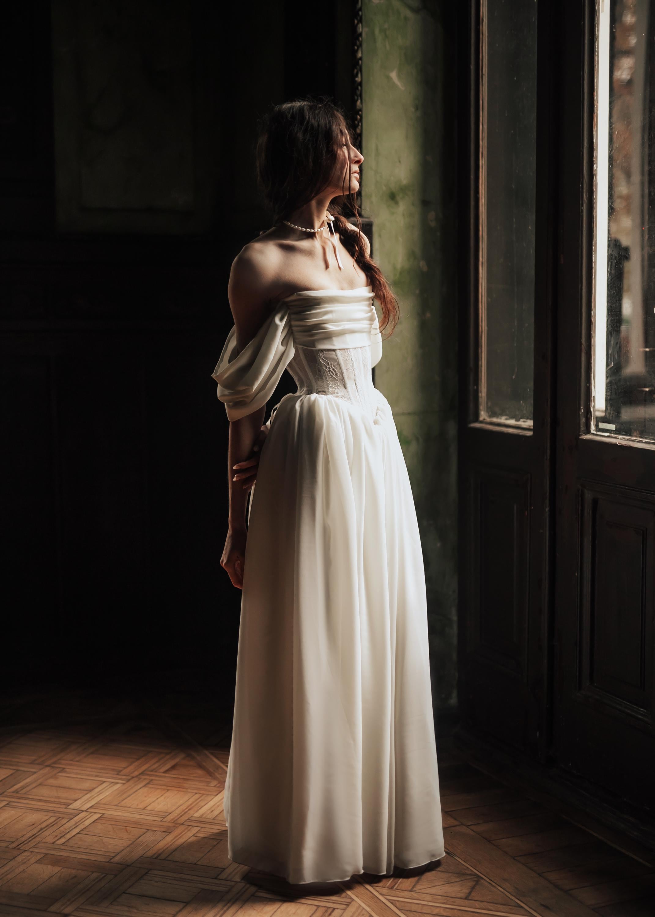 Wedding dress, corset dress, corset, dress, chiffon dress, dress wi...
