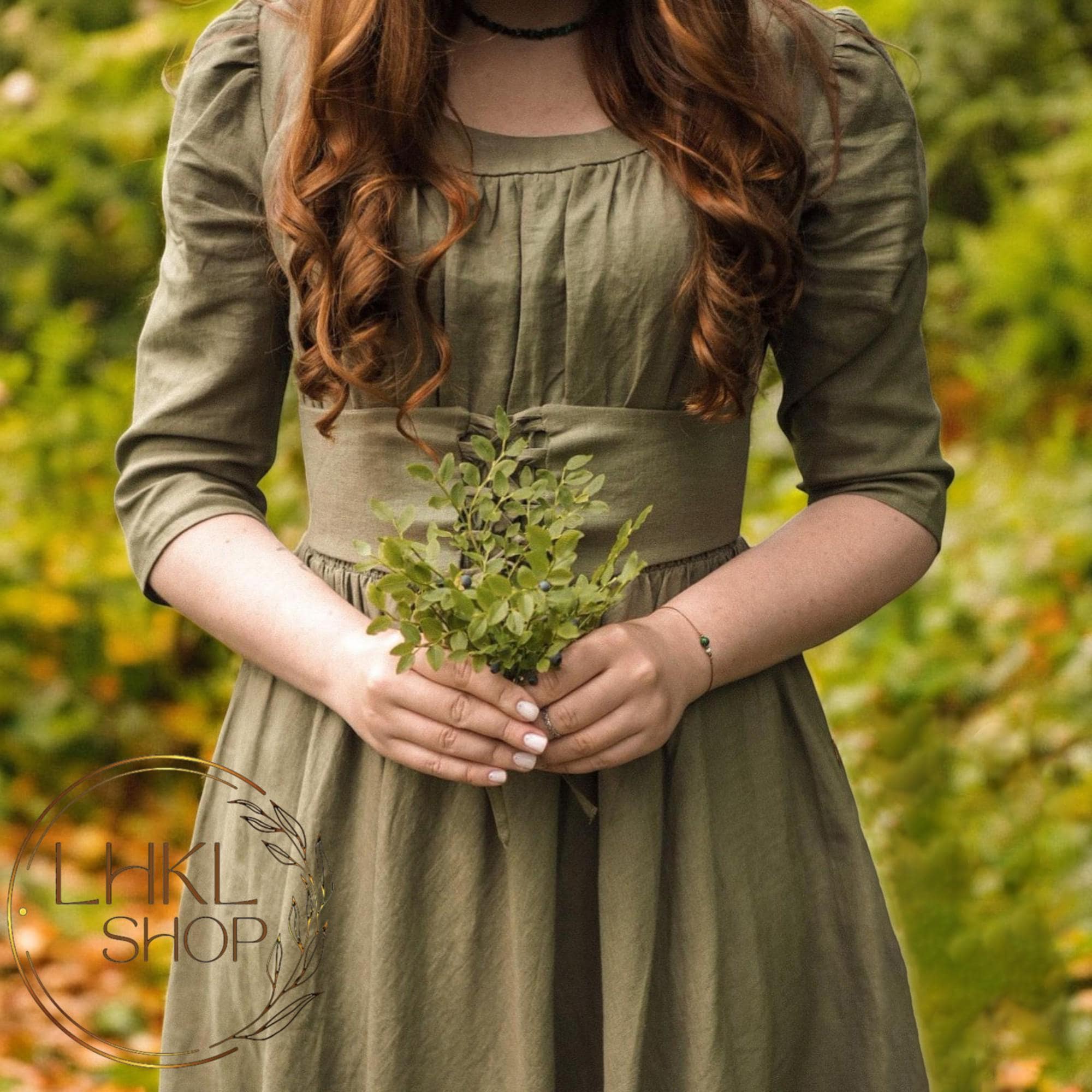 "Long Sleeve Linen Dress, Cottagecore Dress, Maxi Dress, Long Linen Dress, Vintage Retro Dress,...