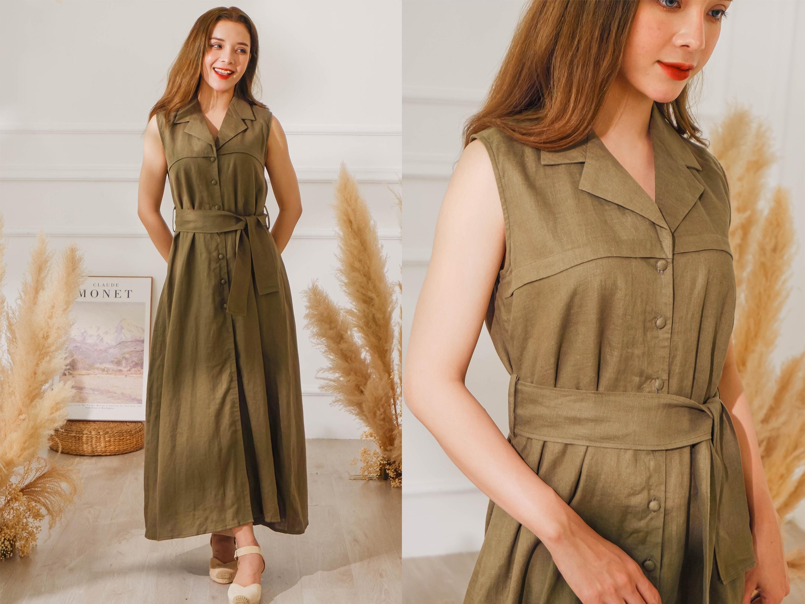 Midi Linen Dress PAPAYA, Long Linen Dress, Vintage Linen Dress, Han...