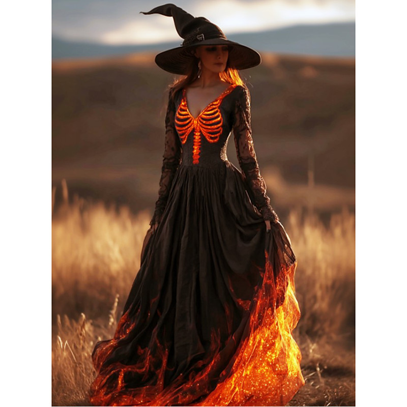 • Women's Skeleton Maxi Dress Pleated Dress Boho Date Going out Regul...