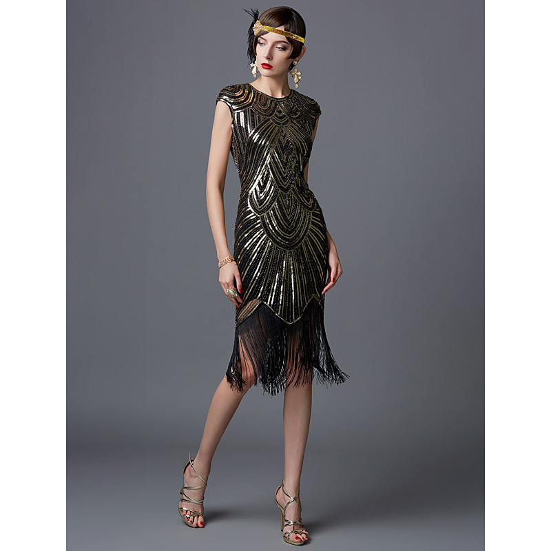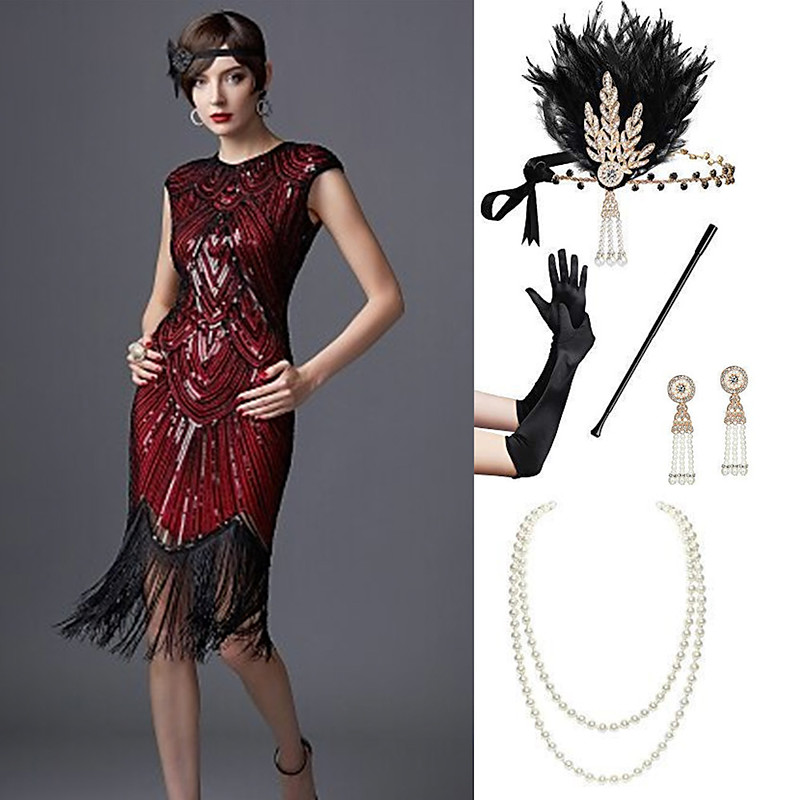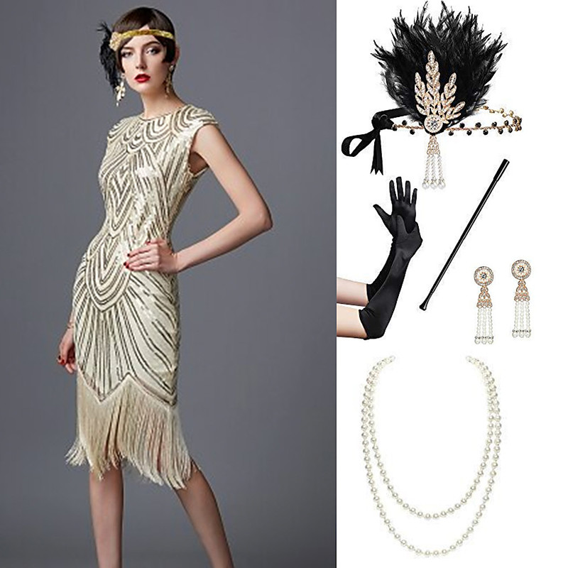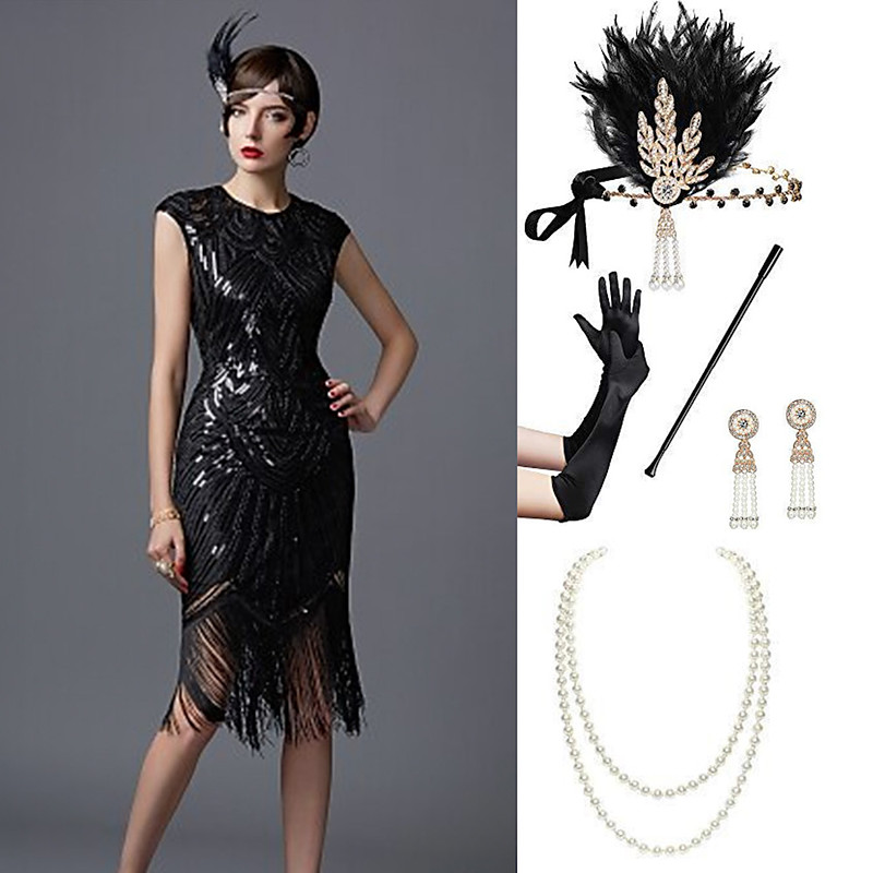 • Roaring 20s 1920s Cocktail Dress with Accessories Set Flapper Dress...