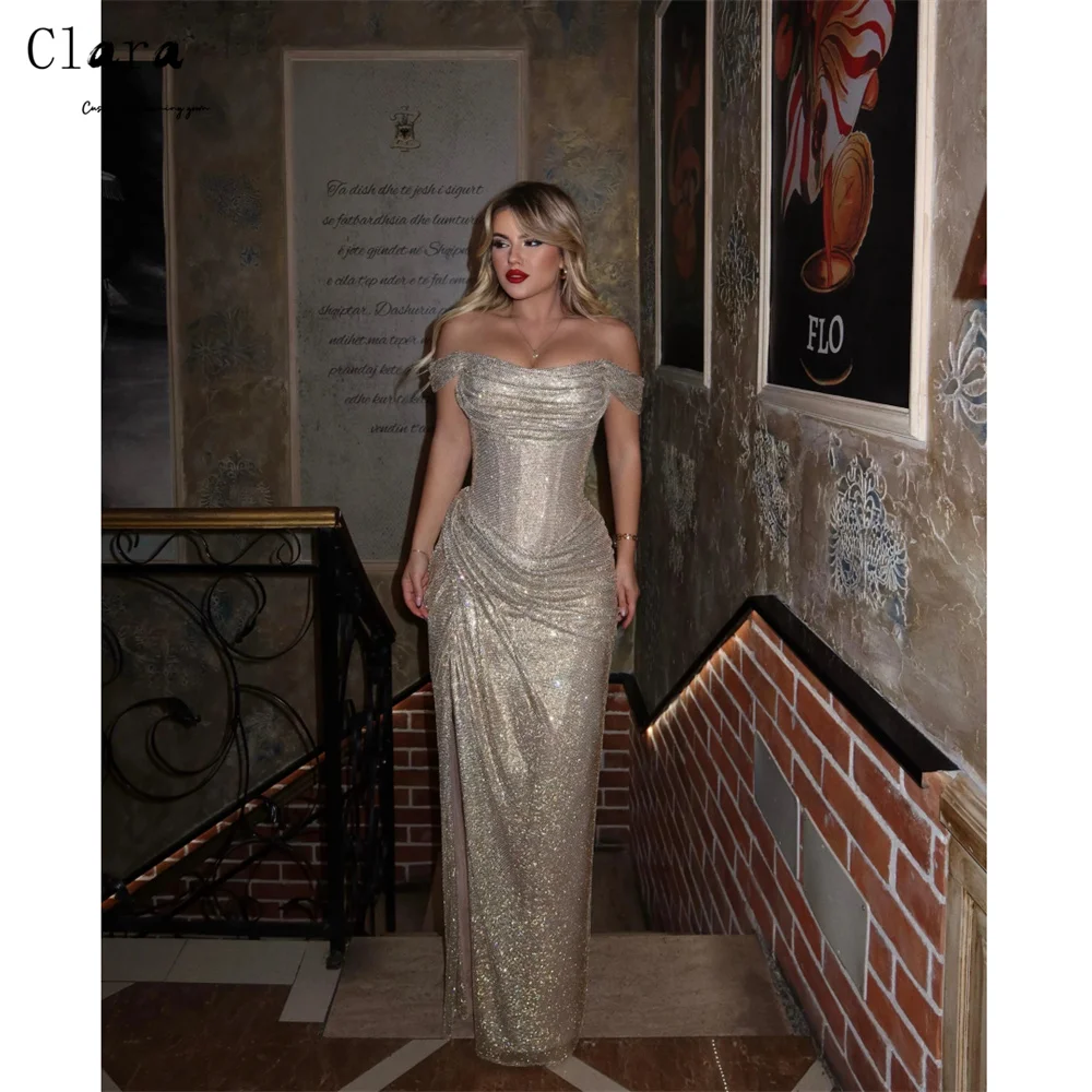 Clara Custom Fishtail Rhinestone Shiny Off-shoulder Evening Dresses Woman Elegant Woman Dress Luxury...