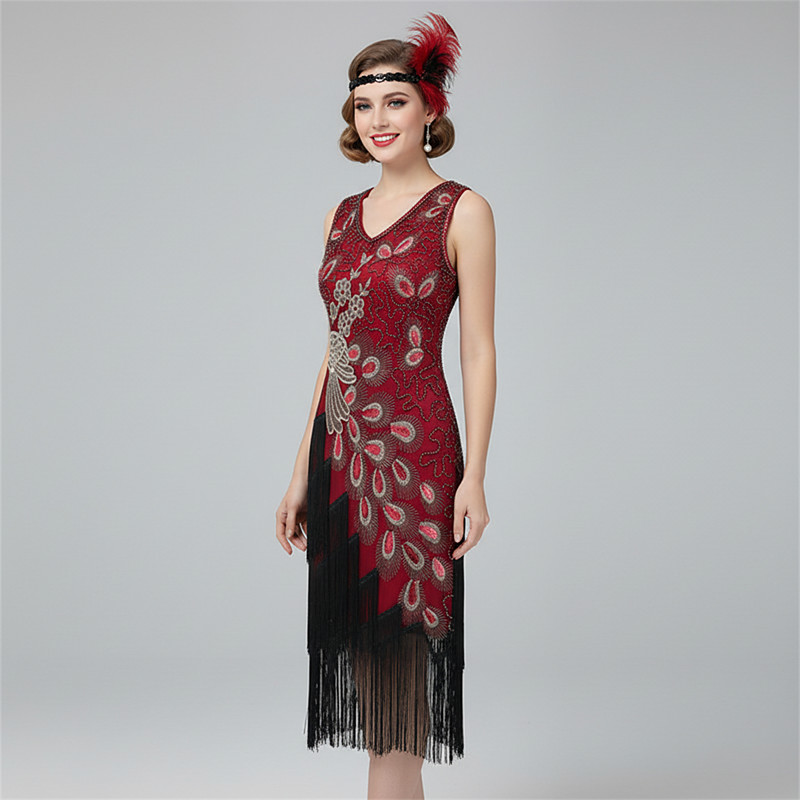 Set Retro Vintage Roaring 20s 1920s Knee Length Flapper Dress Outfi...