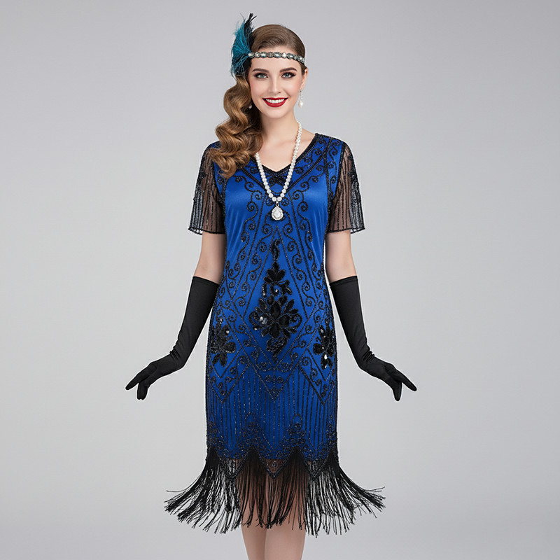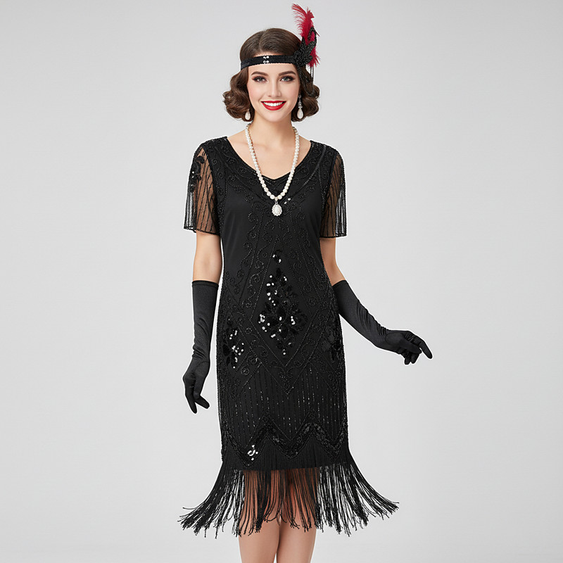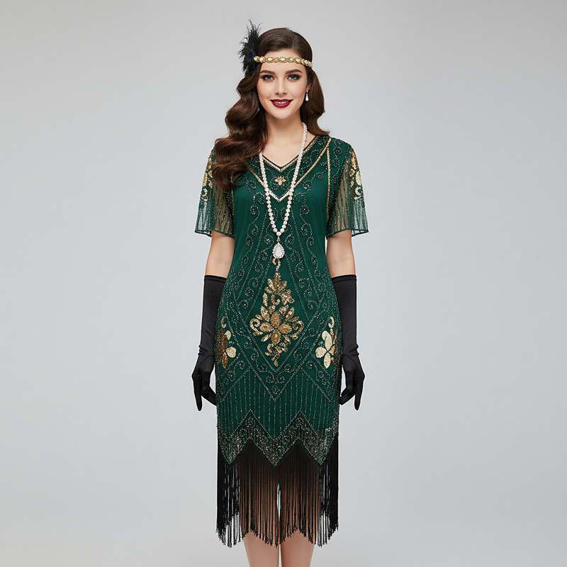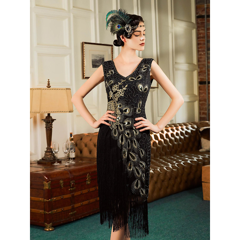 Set Retro Vintage Roaring 20s 1920s Floor Length Outfits Accessorie...