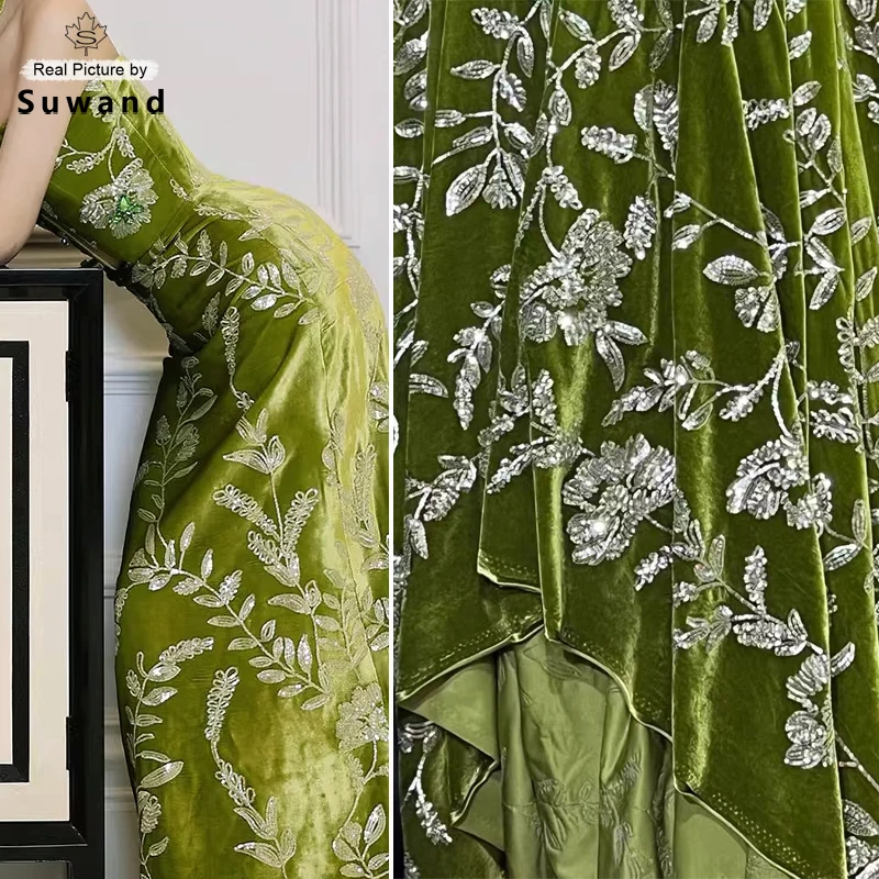Luxury Embroidery Vintage Green Velvet Fabric for Cheongsam Dresses Wedding Backdrop Curtains DIY Cr...