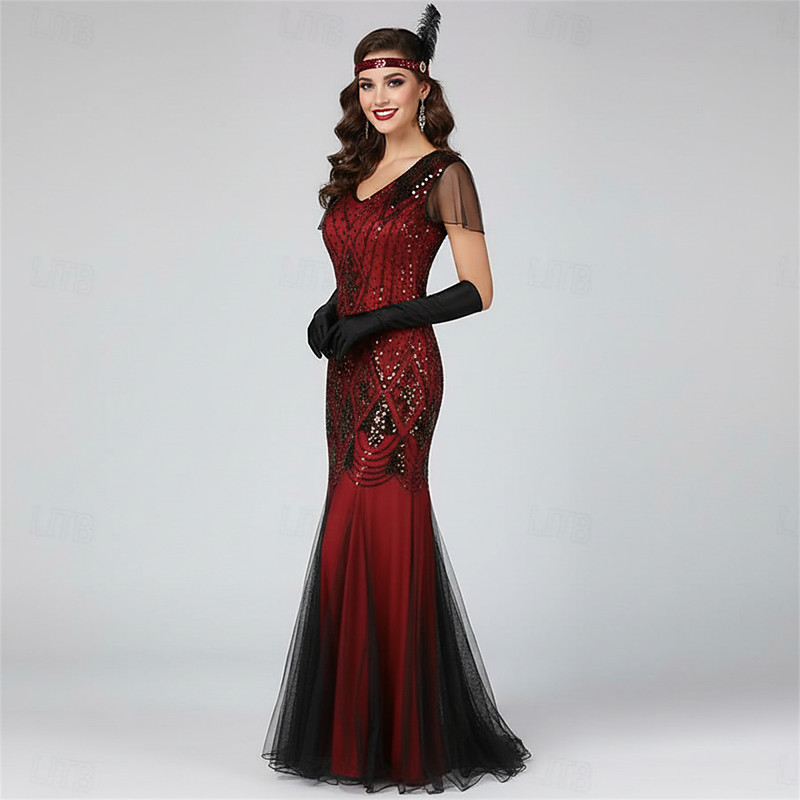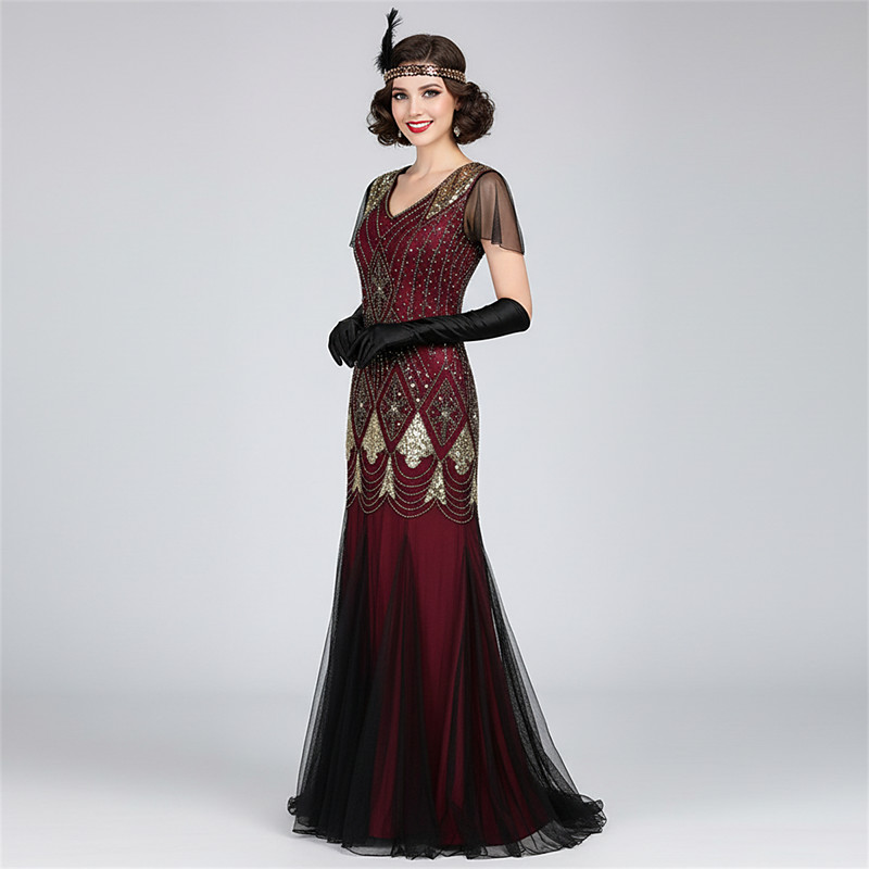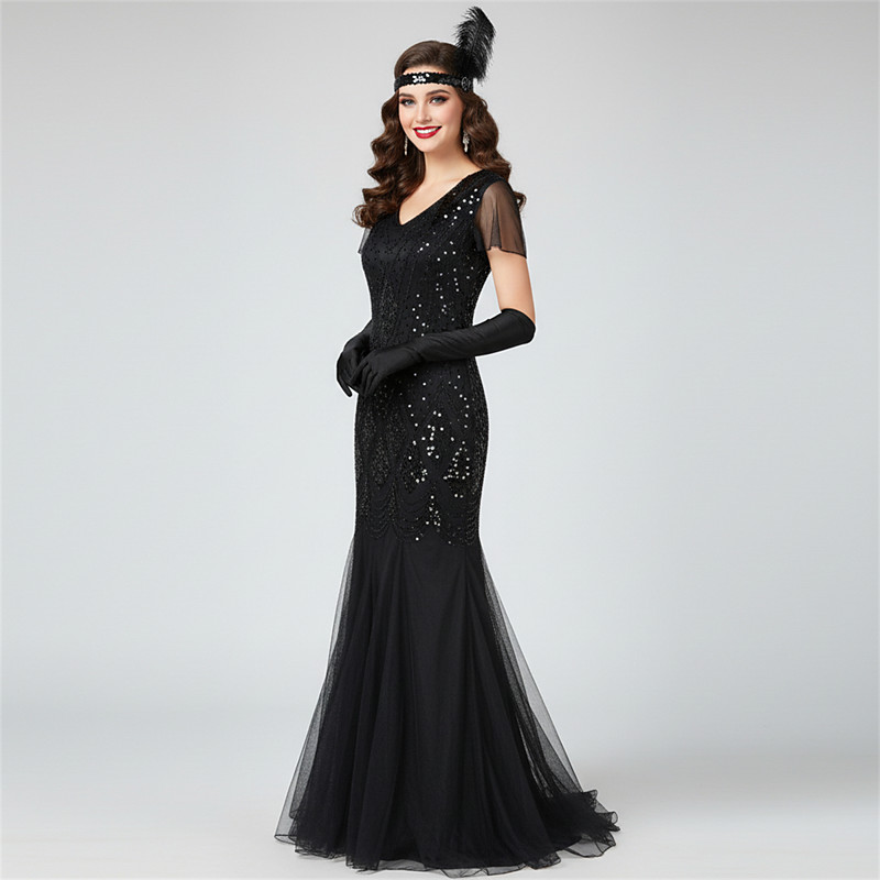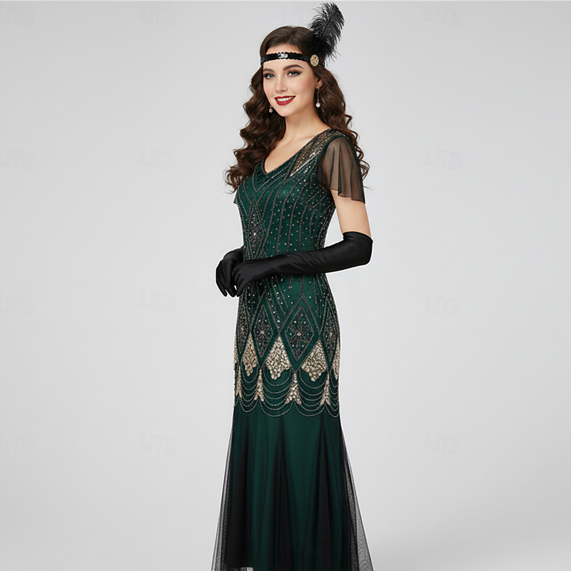 Set Retro Vintage Roaring 20s 1920s Floor Length Outfits Accessorie...