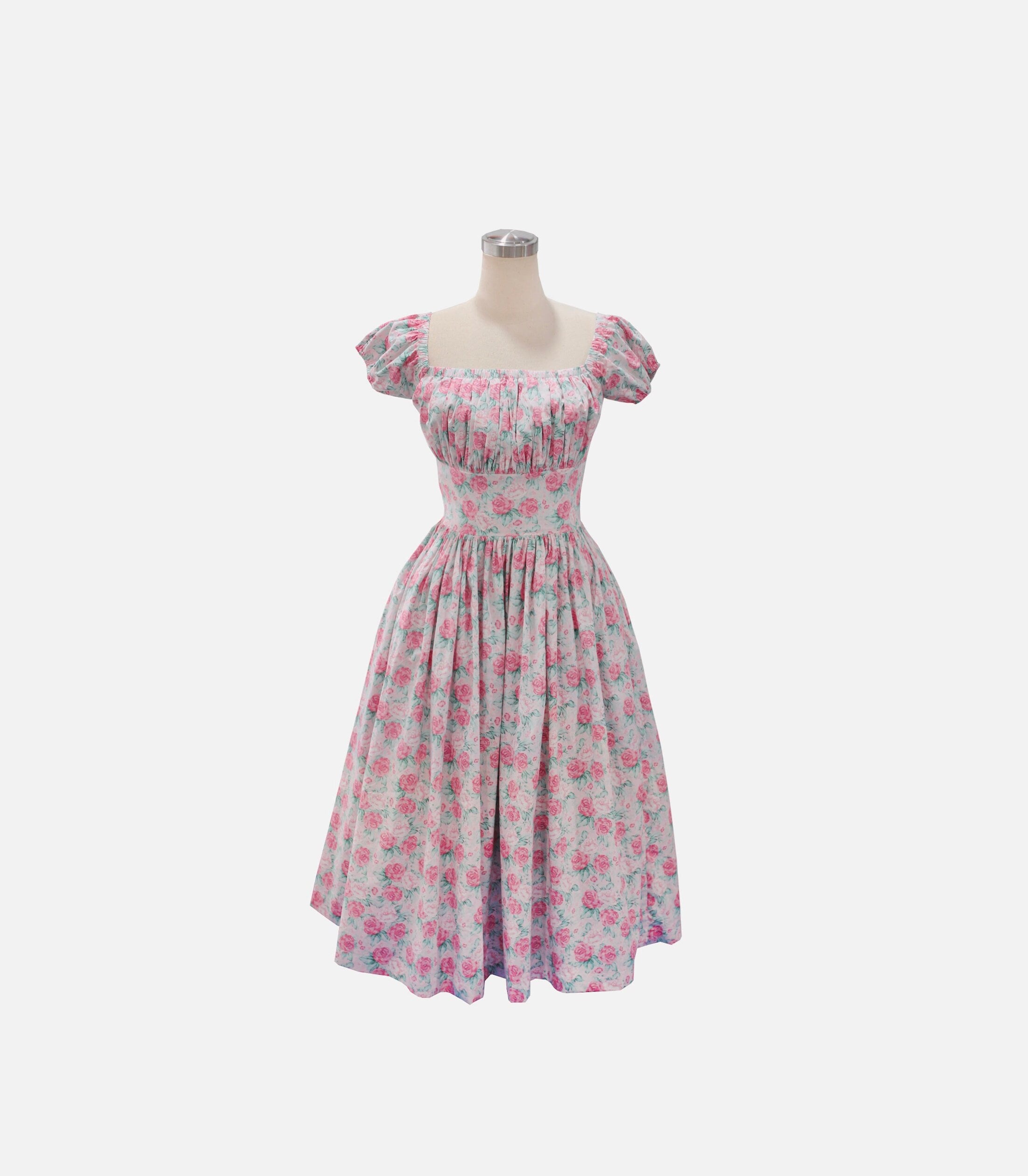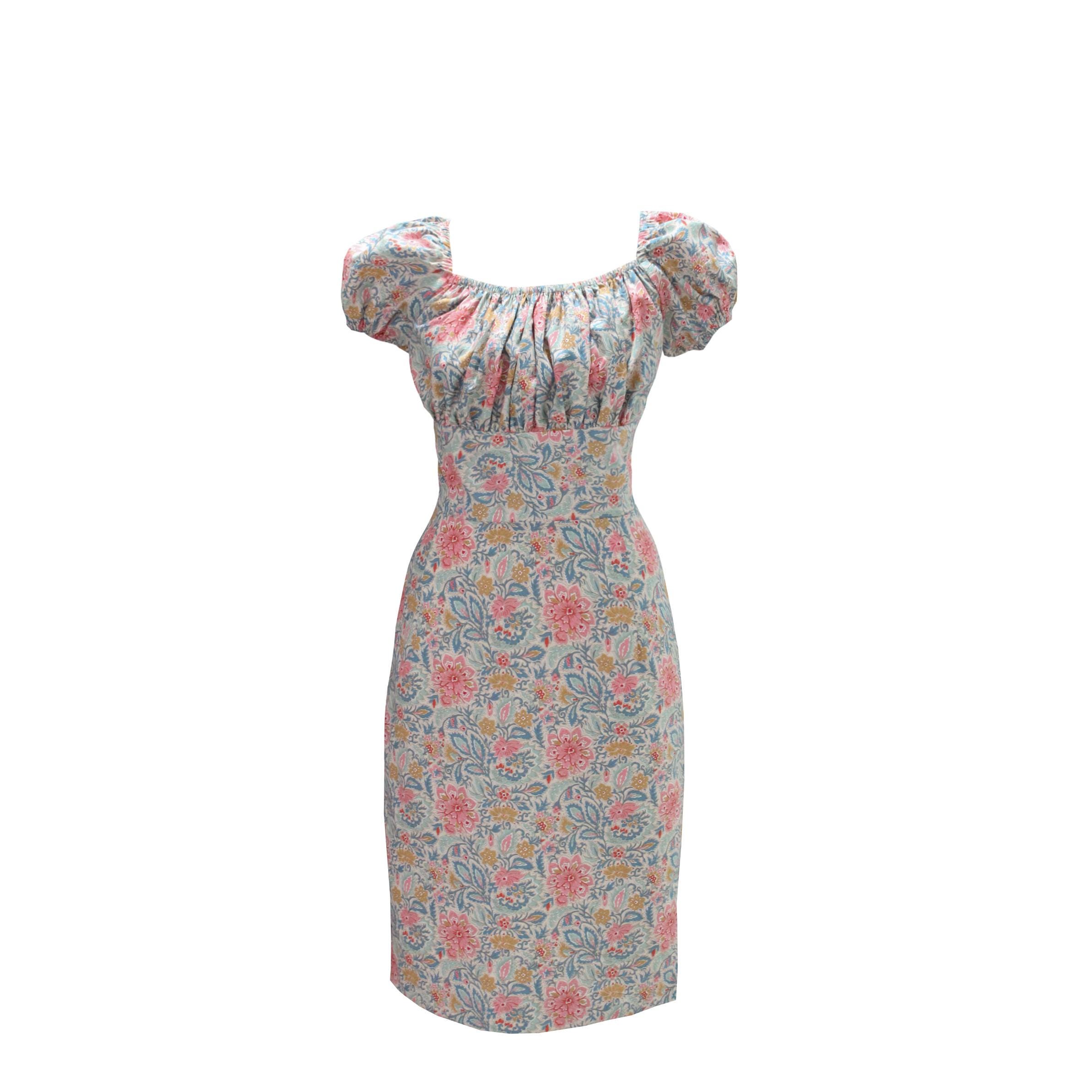 "LOLO Dress #24 Retro dress-up Gathered shelf bust Puffed peasant sleeves Pencil skirt Made to ...