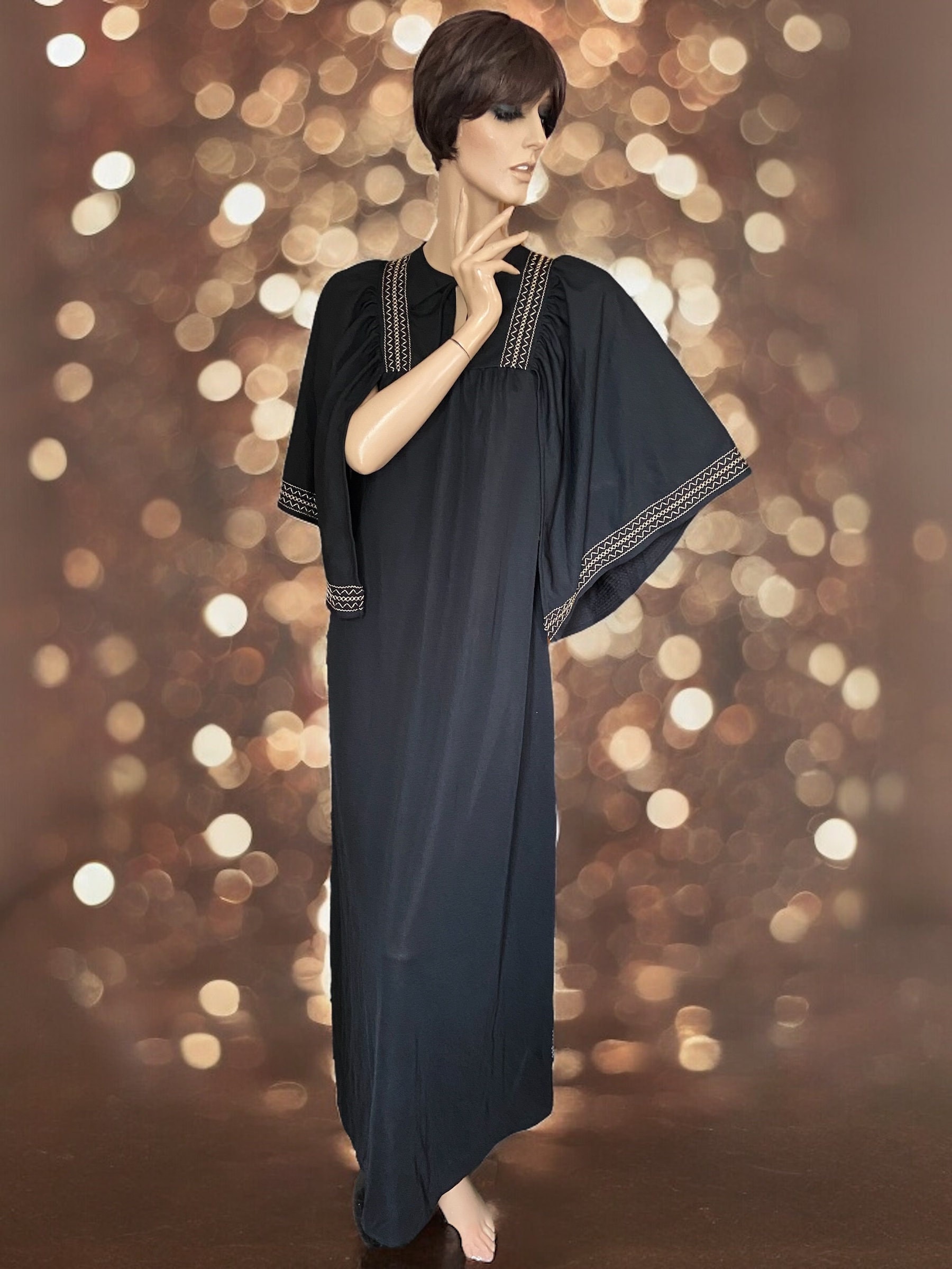 Vintage kaftan maxi dress 70s st Michael's gold black 14