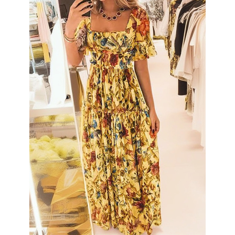 Women's Maxi Dress Corset Dress A Line Dress Milkmaid Dress Puff Sl...