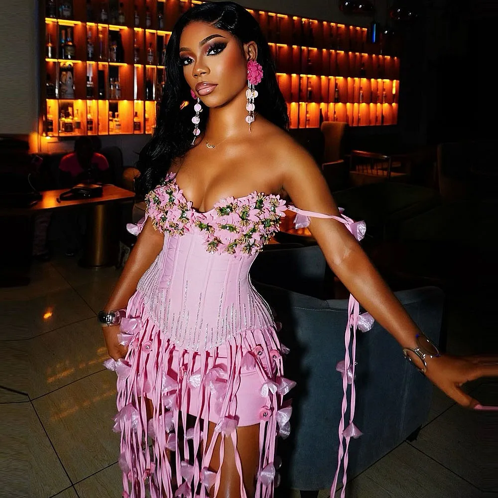 Pink Bow Tassels Mermaid Prom Dresses Off Shoulder Beads Appliques See Through Evening Party Dress B...