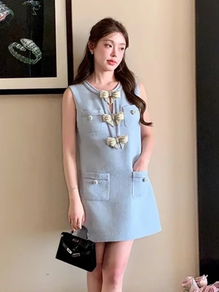 High Quality Luxury Pearl Beading Party Dress French Small Fragrance Bow Short Summer Dress Woman El...