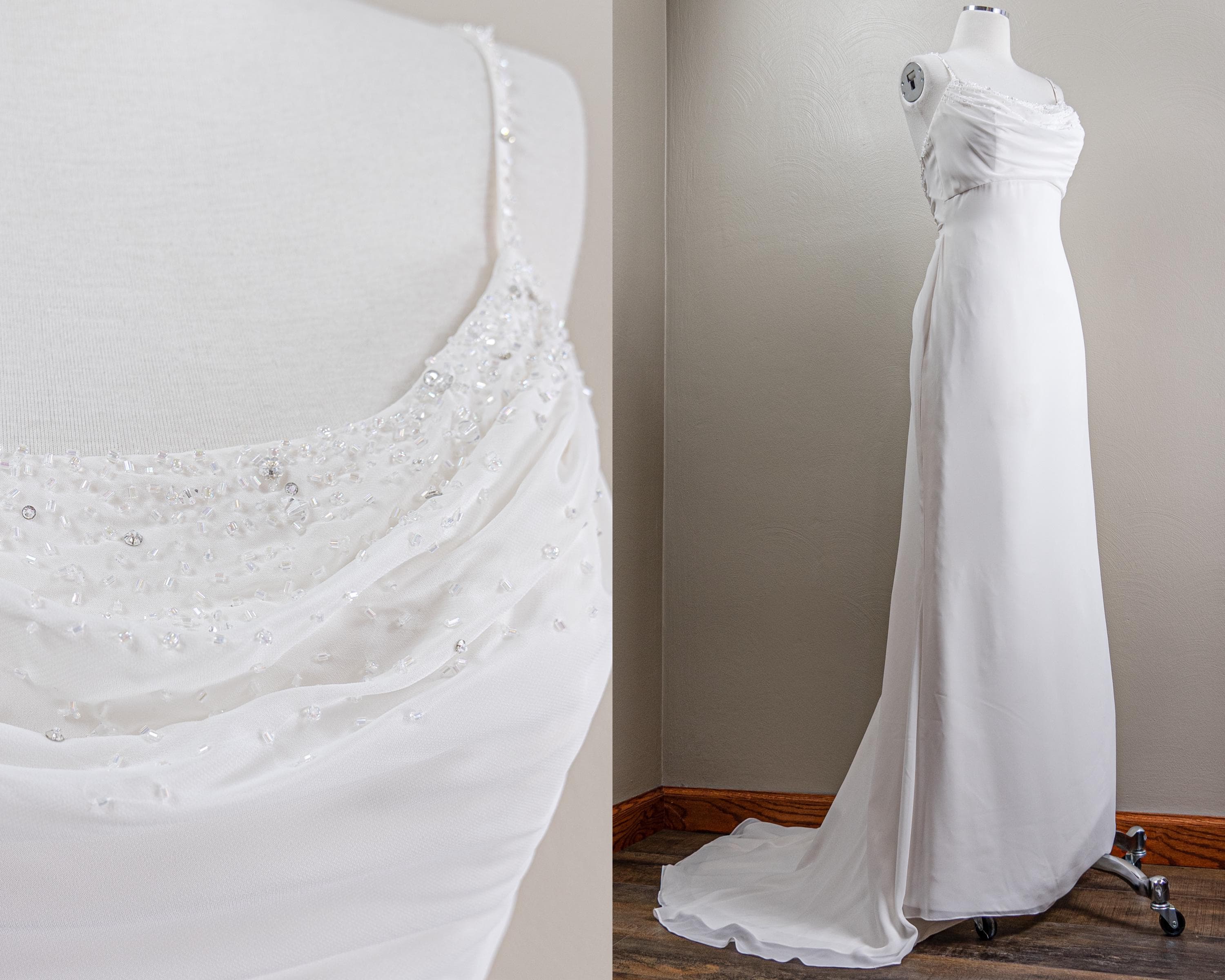 90s Does 30s Chiffon Wedding Dress: Iridescent Rhinestone Beading, ...