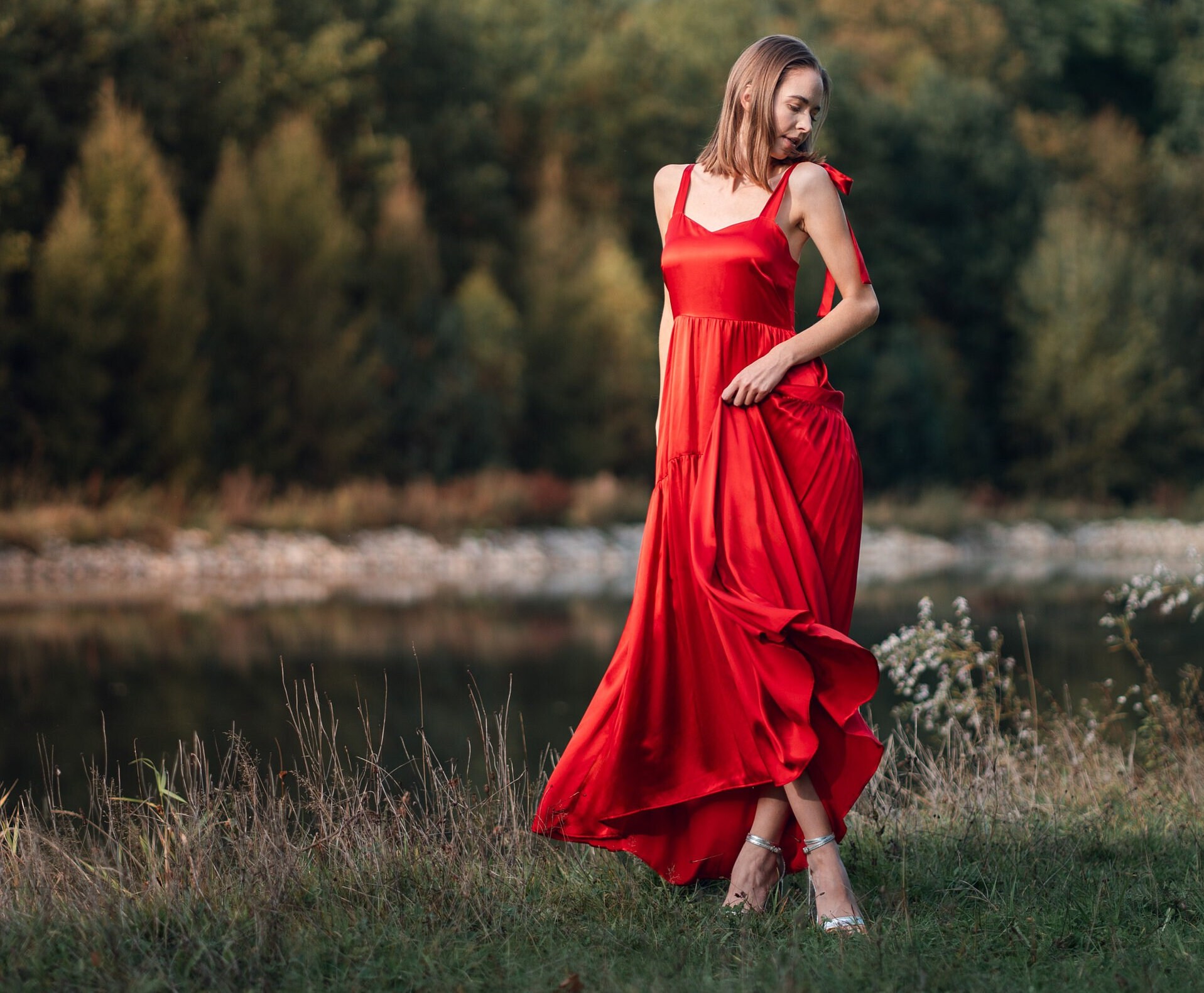 Red silk formal g own Long silk dress Silk evenings dress Formal dr...