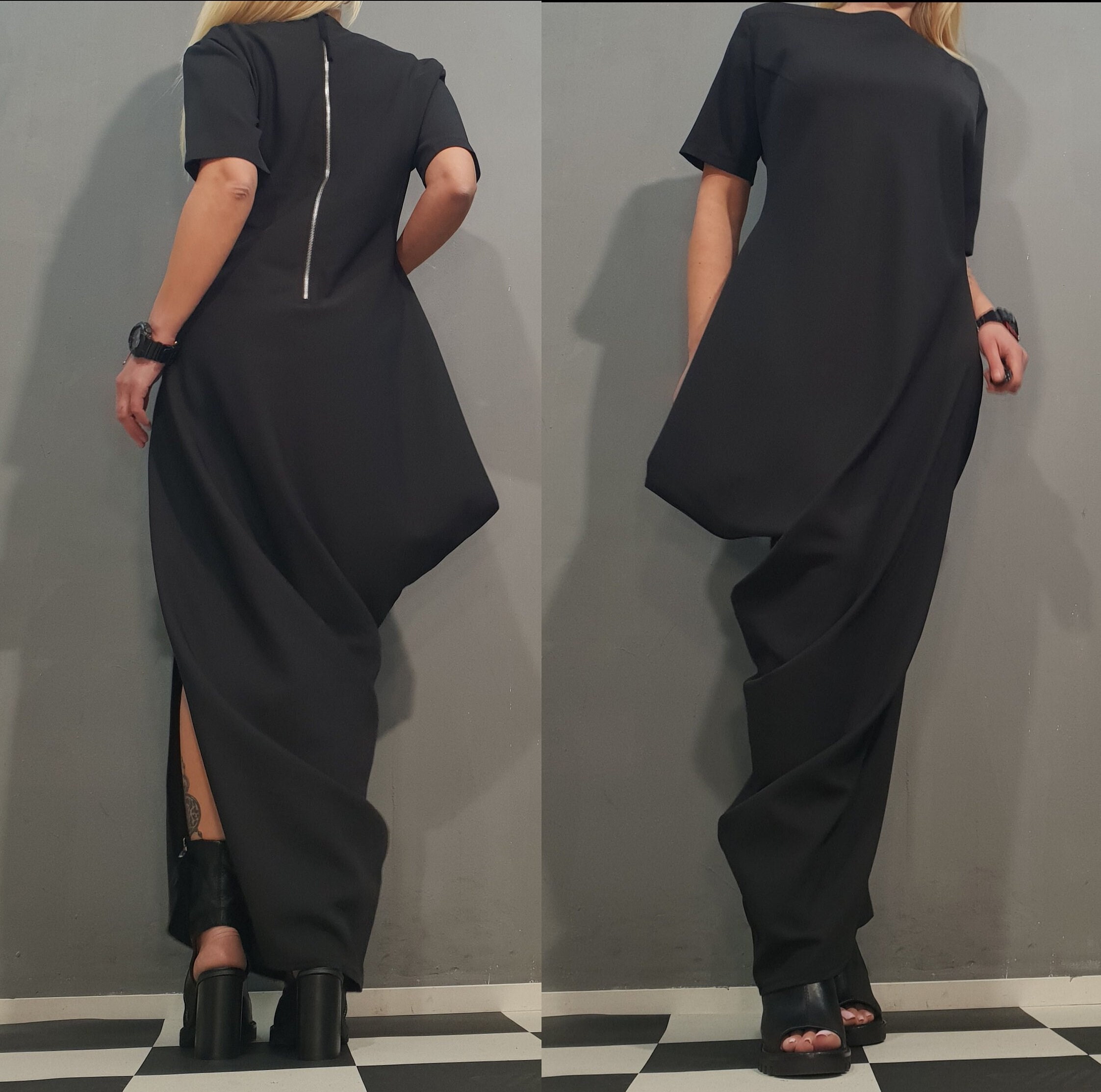 Avant Garde Black Dress, Asymmetrical Dress, Party Cocktail Dress, ...