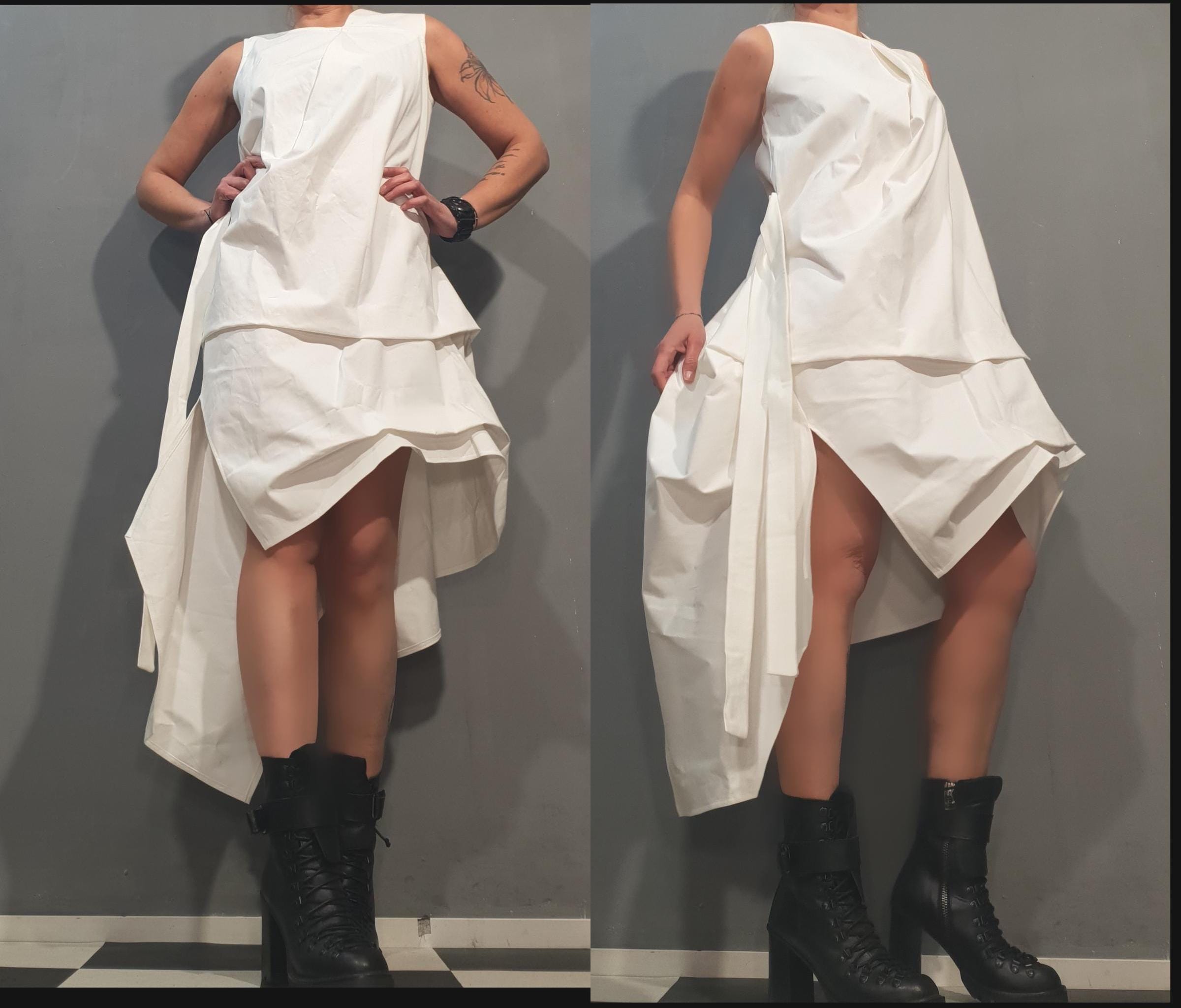 "Avant Garde White Dress, Loose Asymmetrical Dress, Party Cocktail Dress, Steampunk Dress, Extr...